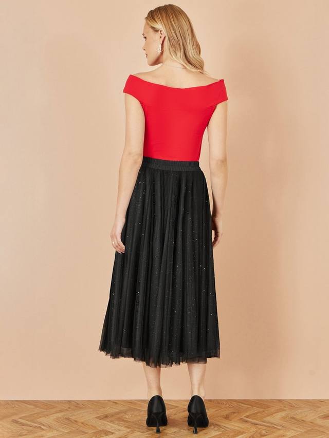 Платье миди от Yumi. Свободный покрой от талии подчеркнут высокой линией талии и изящным сетчатым тюлем.