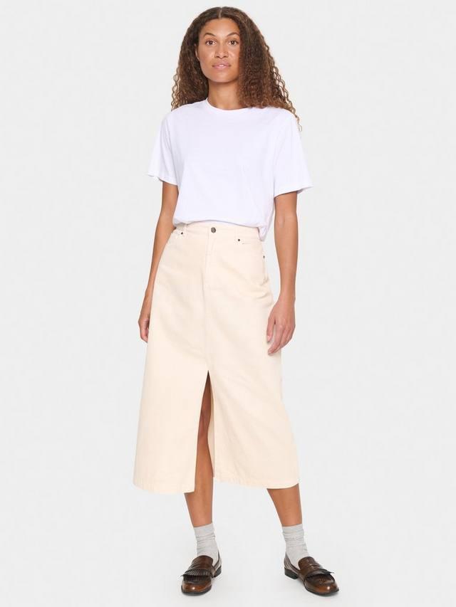 Юбка Ilu из денима — повседневная вещь с бесконечными возможностями для создания стильных образов. Высокая талия, стандартный пояс, застежка на молнию и пуговицы, классический крой и крашеный деним. Юбка длиной ниже колен, закругленные передние карманы, карман для монет и накладные карманы сзади.
