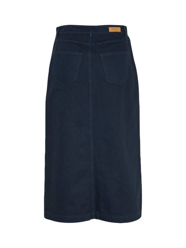 Юбка Ilu из денима — повседневная вещь с бесконечными возможностями для создания стильных образов. Высокая талия, стандартный пояс, застежка на молнию и пуговицы, классический крой и крашеный деним. Юбка длиной ниже колен, закругленные передние карманы, карман для монет и накладные карманы сзади.
