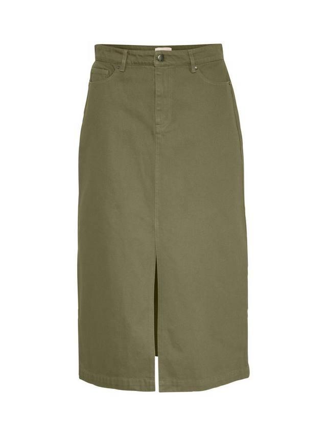Юбка из денима Ilu — это повседневная вещь с бесконечными возможностями для создания стильных образов. Она имеет высокую талию, стандартный пояс, застежку на молнию и пуговицы, классический крой и выполнена из окрашенного денима. Юбка длиной ниже колен, с закругленными передними карманами, карманом для монет и накладными карманами сзади.