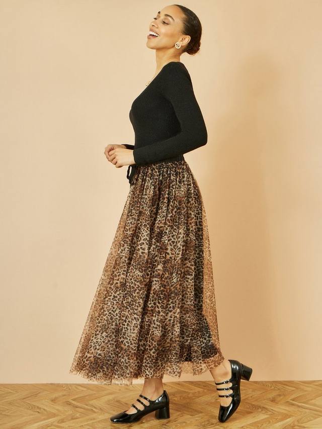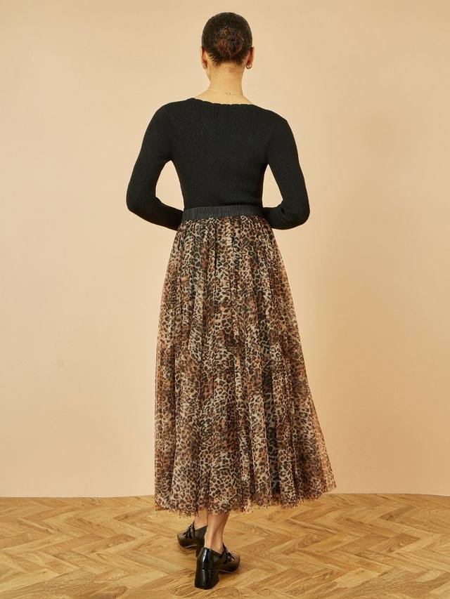 Если в новом сезоне вы предпочитаете возвышенный романтический стиль, то эта модель идеально подойдет для вашего гардероба. Эта юбка миди из роскошного тюля с очаровательным леопардовым принтом выглядит кокетливо и невероятно женственно. Модель с длинными рукавами и водолазкой создаст максимально элегантный образ. Мы рекомендуем эту модель для осенних свадеб и особых случаев.