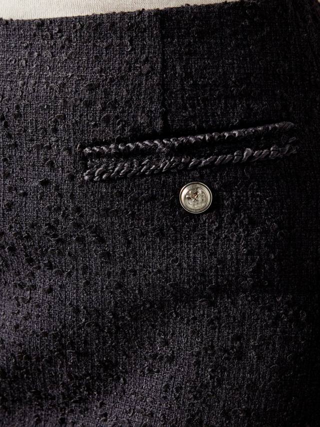 Эта изысканная юбка из твида с отделкой сочетает в себе роскошь и универсальность. Сшита из итальянского хлопкового твида с игривой бахромой и металлическими пуговицами с гербом. Она идеально подходит для элегантного офиса или неформального утренника.