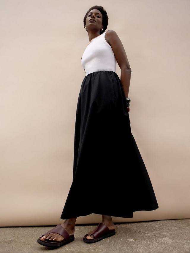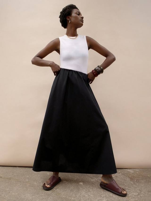Эта миниатюрная макси-юбка А-силуэта от Ro&Zo выполнена из чистого хлопкового поплина и отличается практичным А-силуэтом.