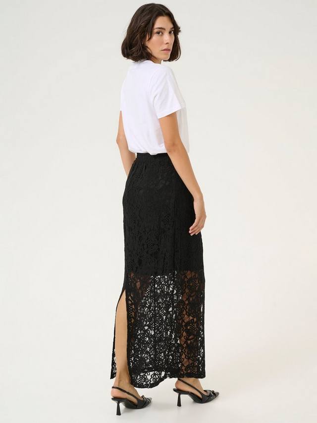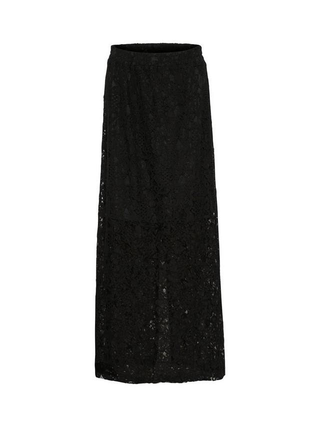 Юбка макси Lanice — универсальный фасон, который добавит женственности любому образу. Юбка выполнена из цветочного кружева и имеет высокую талию на резинке. Юбка прямого силуэта на подкладке с отрезом до колен.