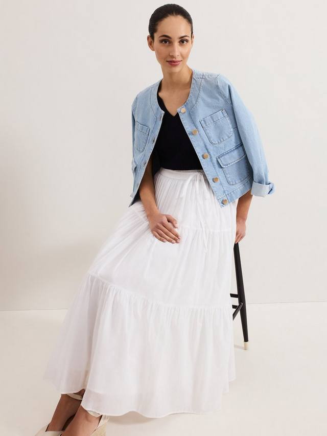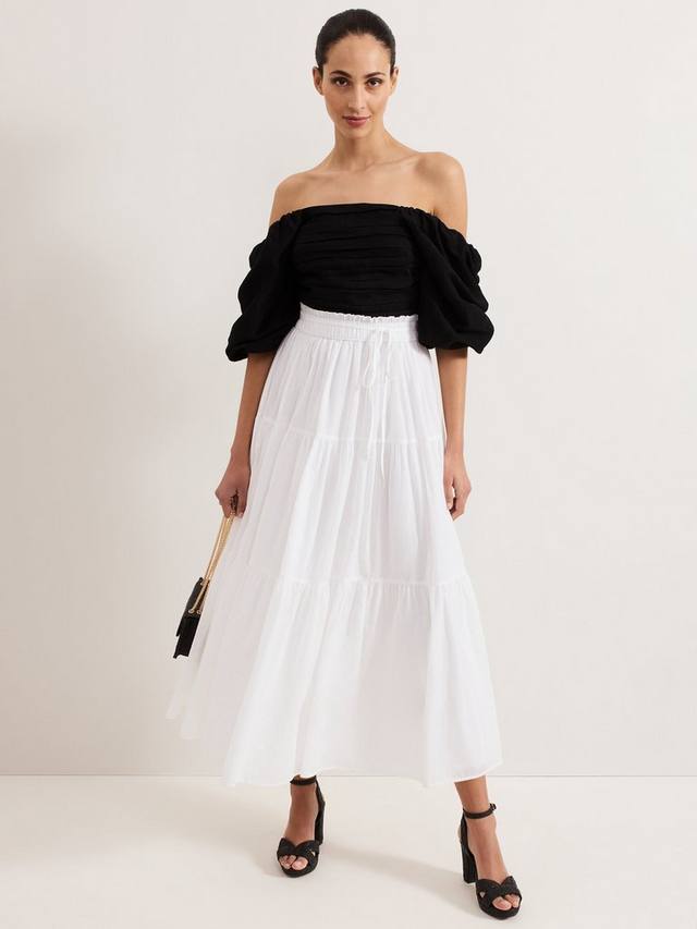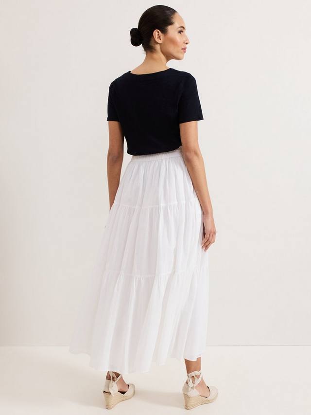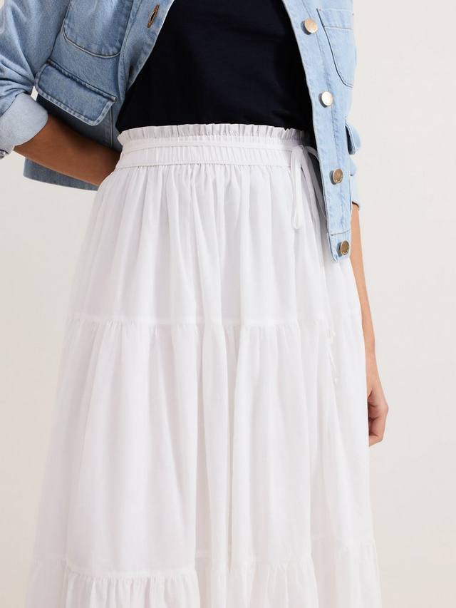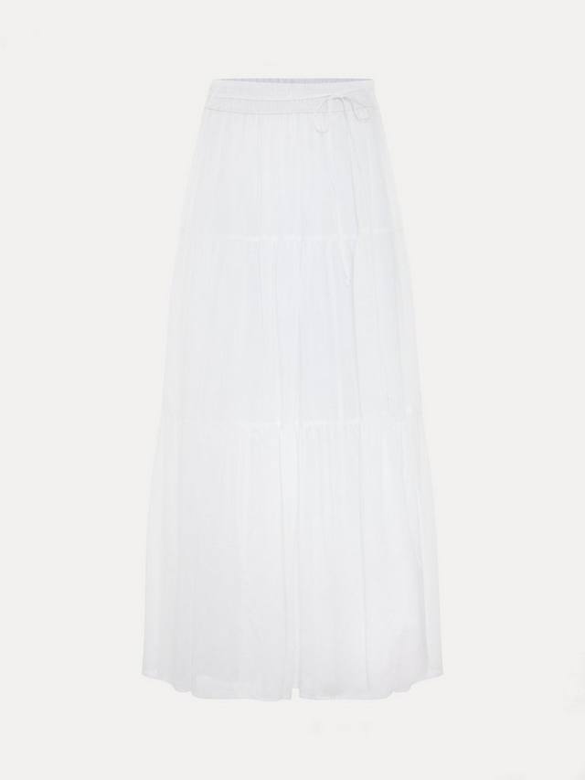 Эта юбка — незаменимая вещь в вашем весенне-летнем гардеробе. Струящаяся юбка макси-длины, мягкие сборки и многоуровневые детали создают объемный силуэт, не стесняющий движений. В сочетании с любимыми аксессуарами эта легкая модель идеально подходит как для повседневной носки, так и для вечернего ношения в теплые дни.
