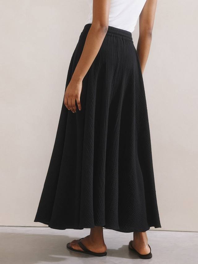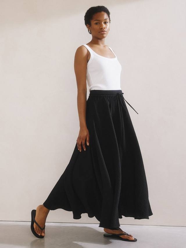 Юбка макси из марли сочетает в себе комфорт и стиль. Она имеет выгодно подчеркивающий фигуру А-силуэт и мягкий эластичный пояс с кулиской. Легкое и воздушное, это платье удобно носить и идеально подходит для упаковки вещей – глажка не требуется.