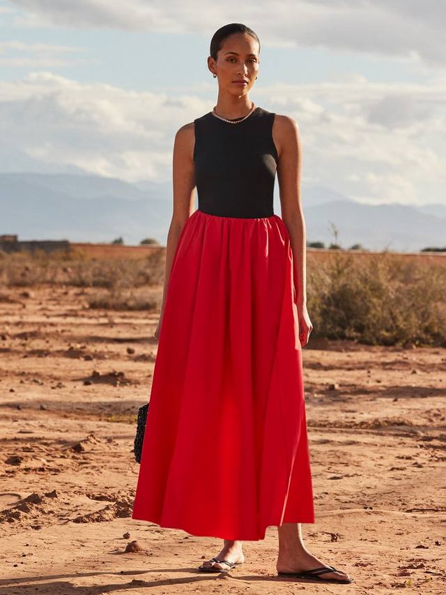 Эта юбка в пол от Ro&Zo с кокетливым силуэтом, придающим ей индивидуальность, превращает простой дизайн в эффектный.
