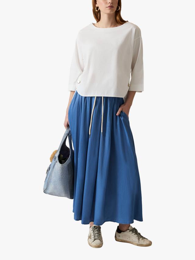Элегантная и универсальная юбка James Lakeland на кулиске доходит до щиколотки и отличается свободным, струящимся кроем. Эластичный пояс, украшенный бантом на кулиске, обеспечивает удобную и регулируемую посадку. Удобные карманы по бокам обеспечивают дополнительную функциональность.
