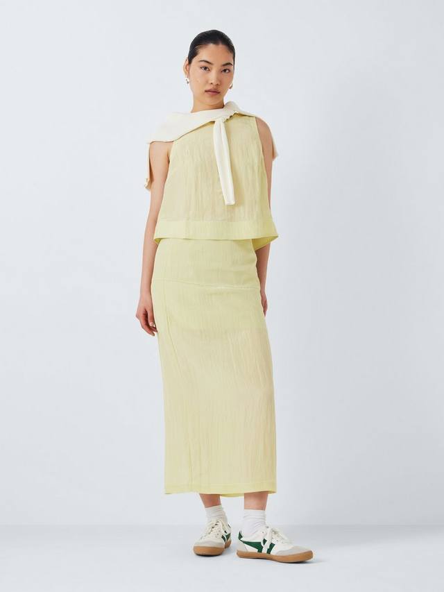 Примечания стилистаДобавьте контраста нейтральному стилю, надев топ с принтом и оборками.