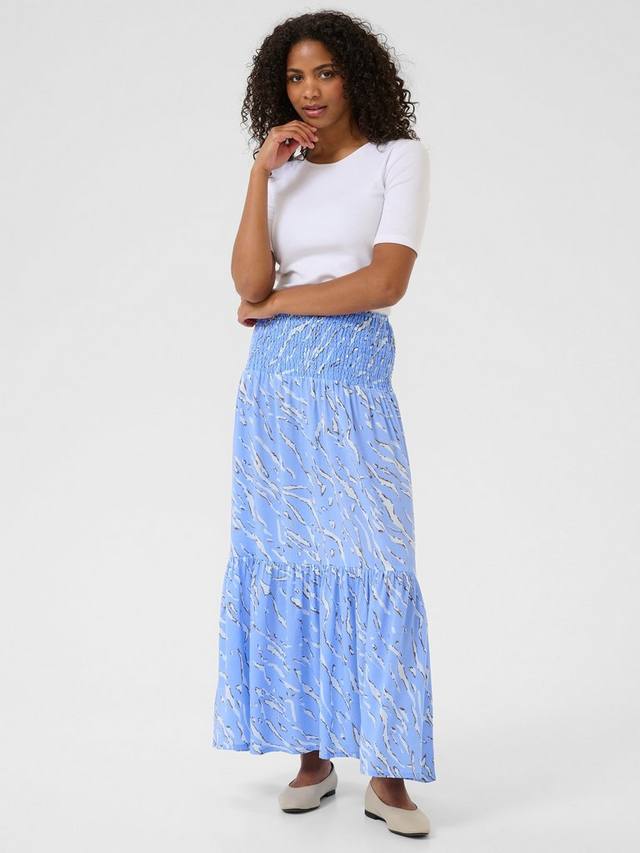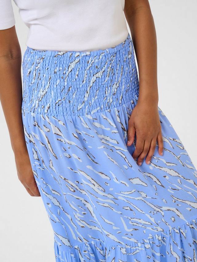 Эта юбка в пол от KAFFE с широким поясом-сборкой и струящимся А-силуэтом украшена эффектным абстрактным принтом.