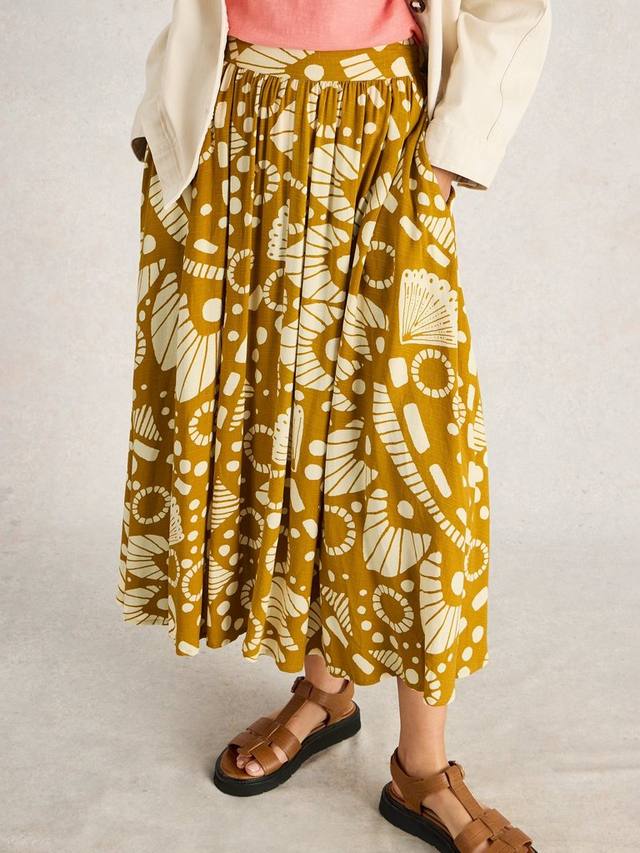 Струящаяся юбка длиной ниже колена с эластичным поясом и боковыми карманами.