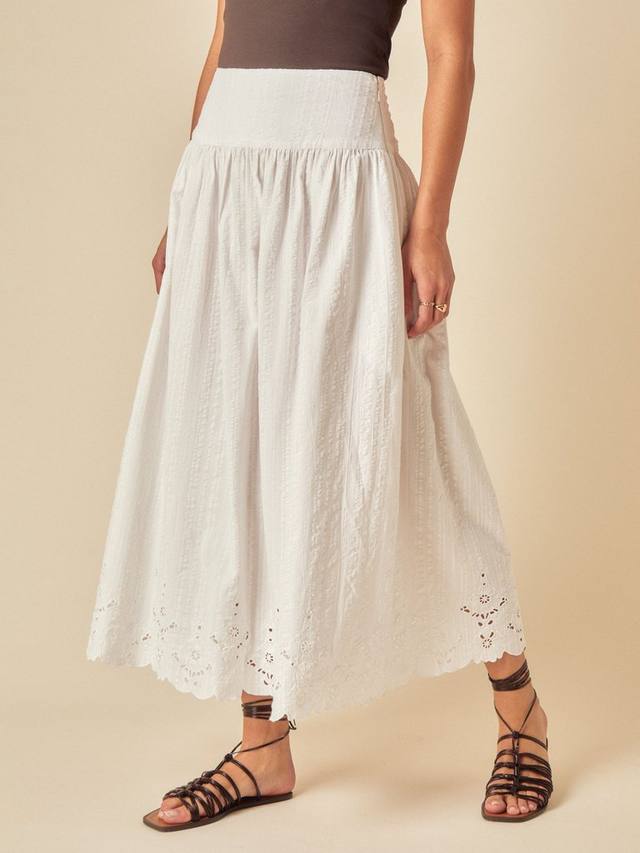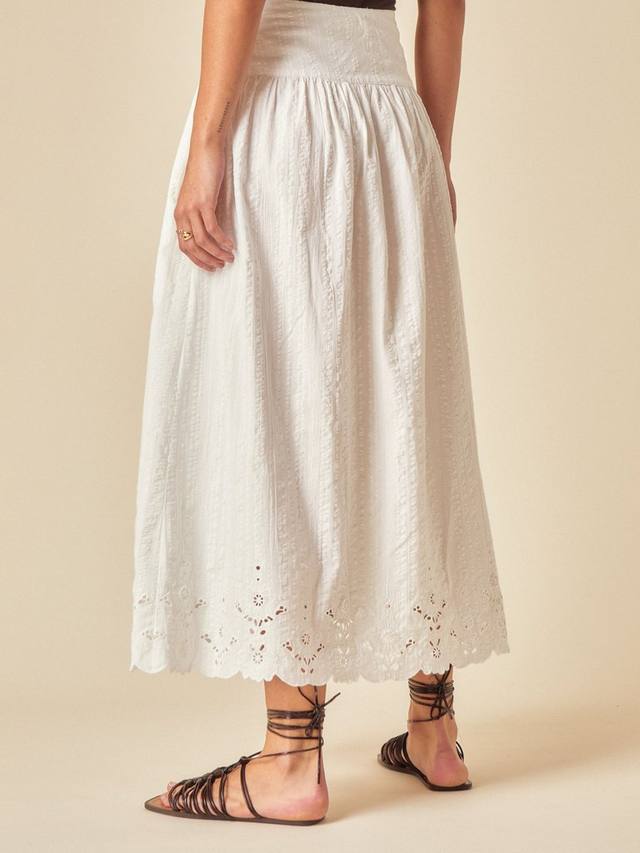 Свободная хлопковая юбка для долгих летних вечеров. Нам особенно нравится вышивка, фестончатый подол и А-образный силуэт, облегающий фигуру. Носите с подходящим топом Layla. Застегивается на потайную молнию.