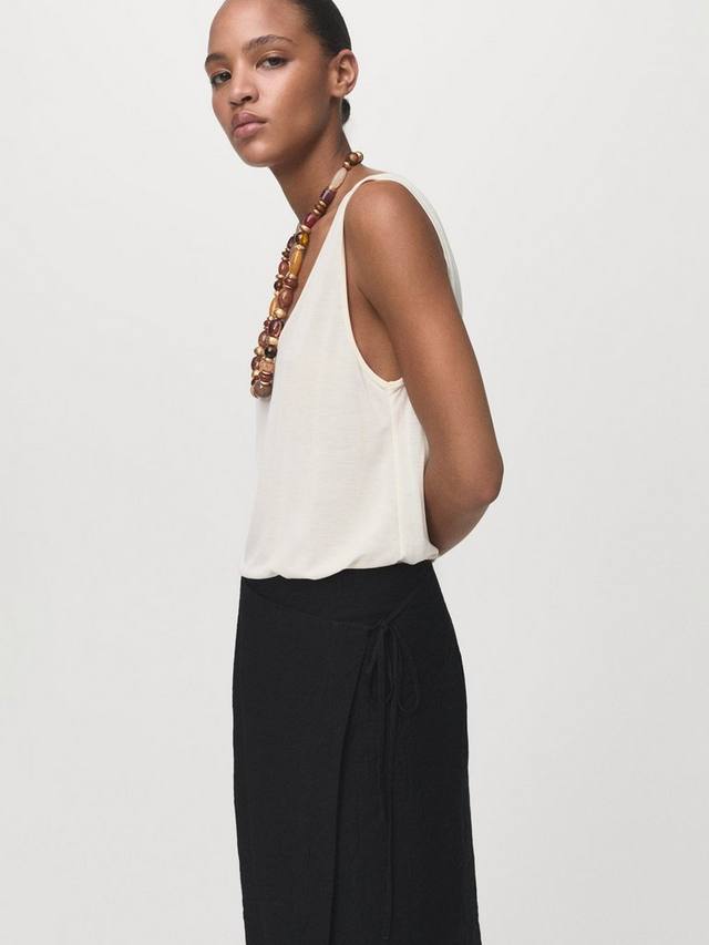 Юбка миди от Mango. Сдержанный силуэт с запахом, выполненная из вискозной смеси с разрезом для современного образа.