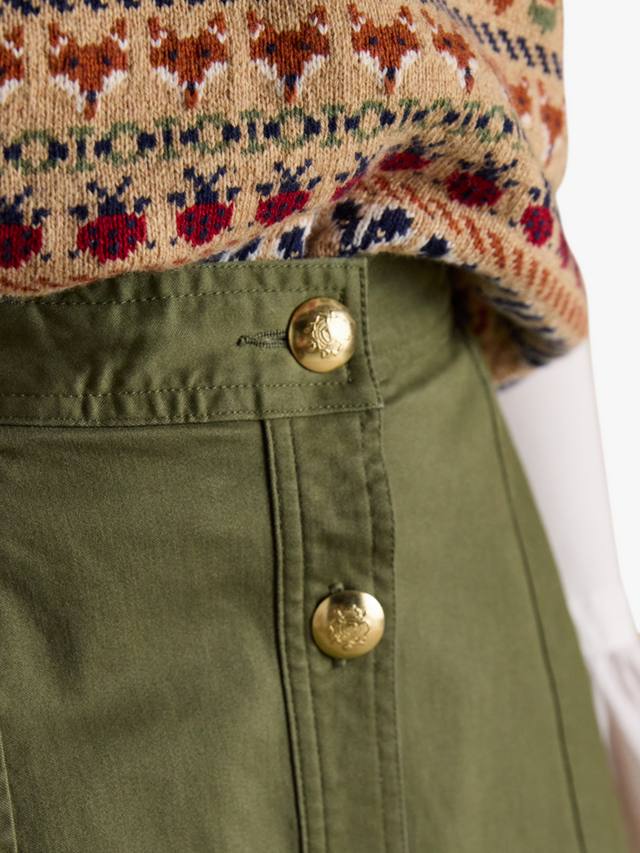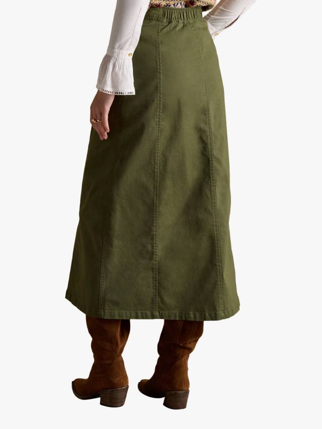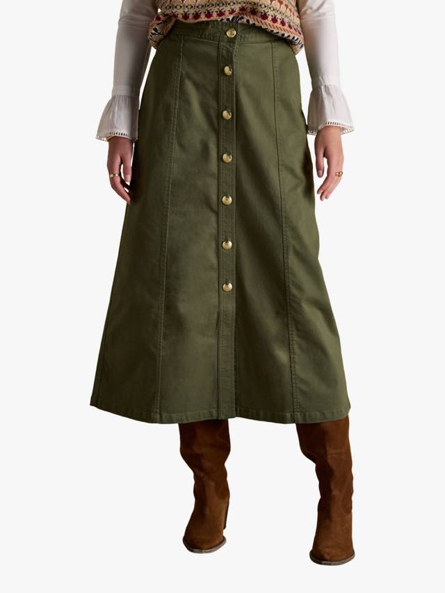 Чёткие пропорции и миди-крой — выбирайте эту юбку длиной до середины икры от Joules. Юбка А-силуэта выполнена из хлопковой смеси и застёгивается на пуговицы.