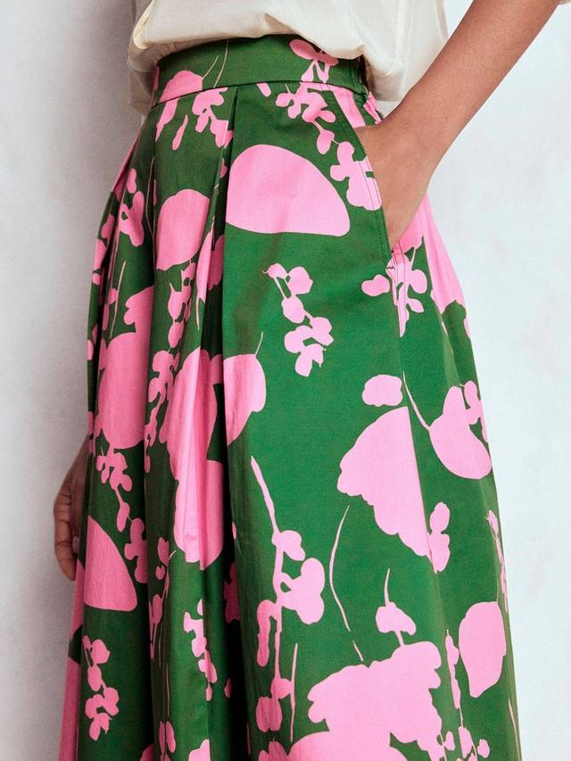Зарядитесь энергией в этом расклешенном миди-юбке с ярким цветочно-лиственным узором. Мягкий хлопковый материал и практичная застежка-молния обеспечат вам комфорт, свободу и стиль, позволяя вам самовыражаться, куда бы вы ни отправились.