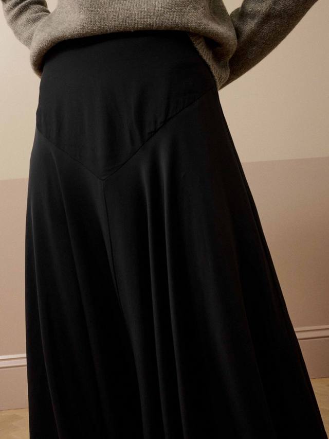 Каждому нужна базовая черная юбка в коллекции, и эта красавица из крепа на атласной подкладке, разработанная собственной командой Brora, с ее V-образной кокеткой, невидимой молнией сзади и подчеркивающим фигуру А-образным силуэтом, — то, что нужно!