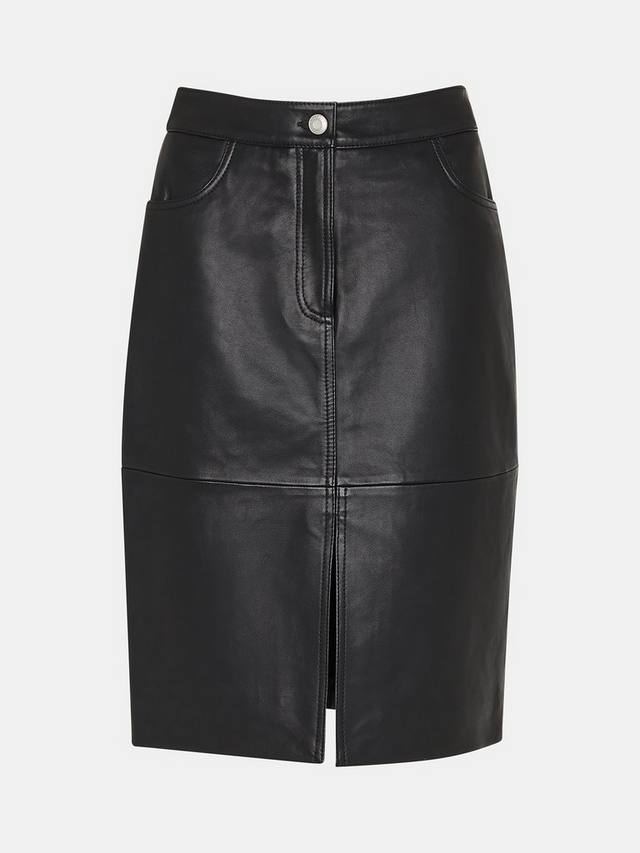 Эта юбка от Whistles выполнена из гладкой натуральной кожи и доходит до колена, а спереди имеет разрез.