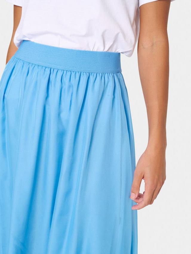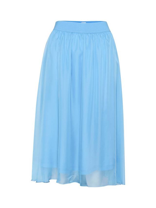 Юбка Coral — универсальная и стильная модель, которую можно носить с чем угодно. Юбка имеет А-образный крой, высокую талию и эластичный пояс. Юбка выполнена из шифона и имеет подкладку в тон, а длина юбки — до середины голени.