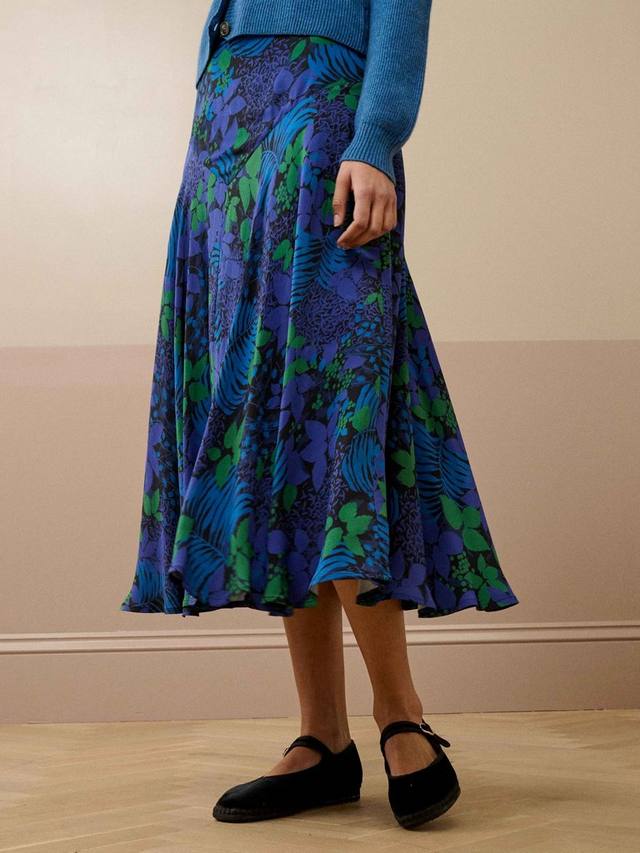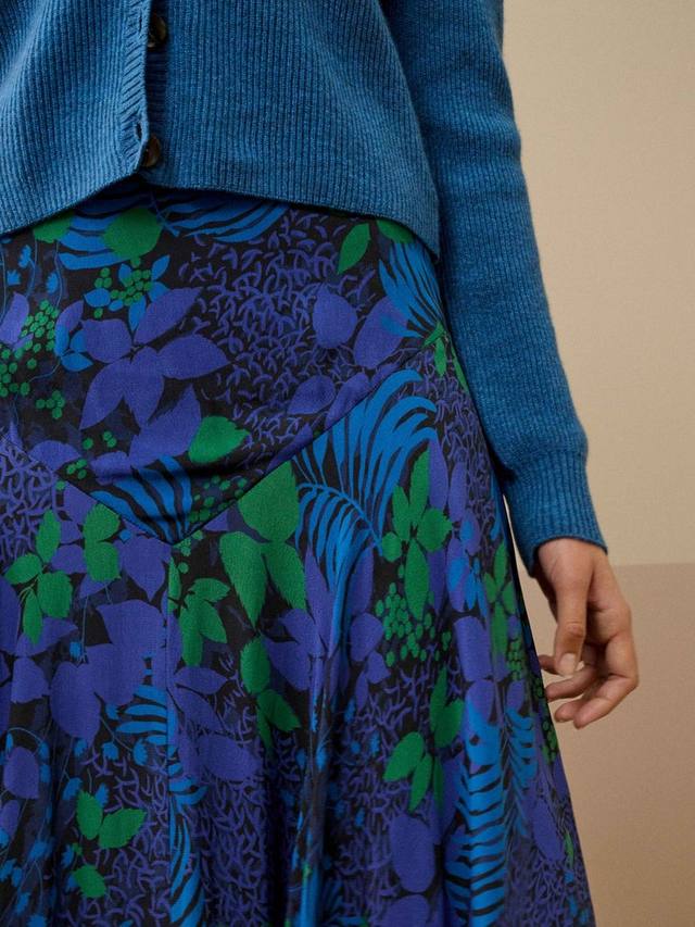Эта новая юбка А-силуэта из крепа с атласной подкладкой, разработанная искусными дизайнерами Brora, украшена ярким ботаническим узором, потайной молнией сзади, косым кроем и великолепной посадкой на талии и бедрах.