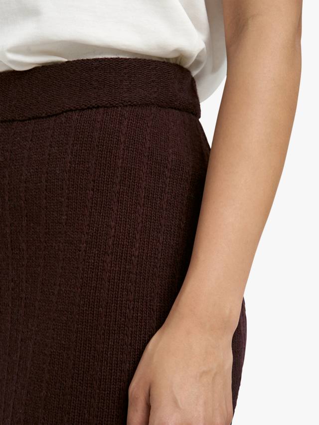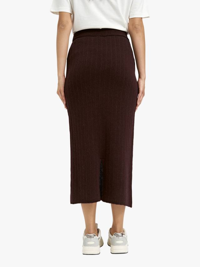 Эта юбка миди выполнена из трикотажного смесового материала с отделкой в полоску. Эластичный пояс обеспечивает комфорт с утра до вечера, шлицу и прямой силуэт.