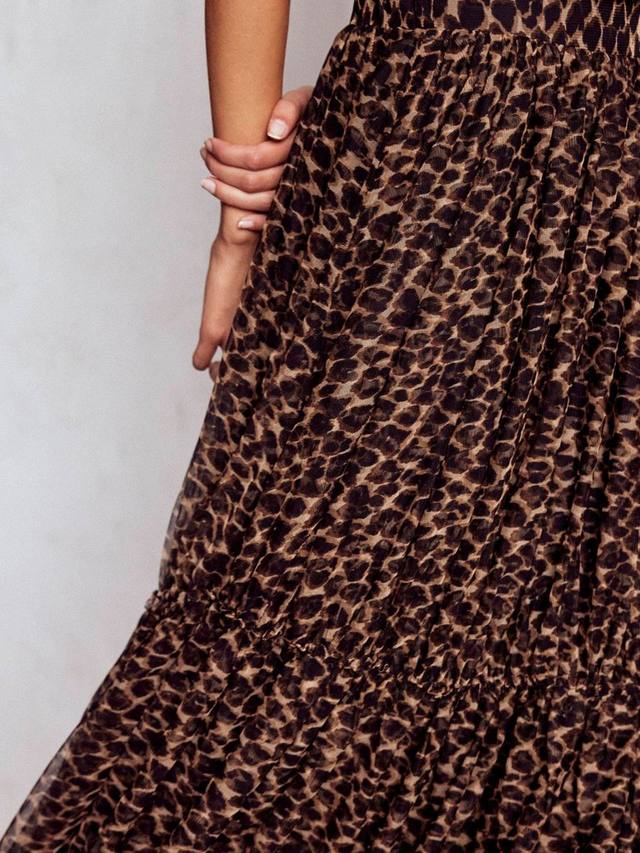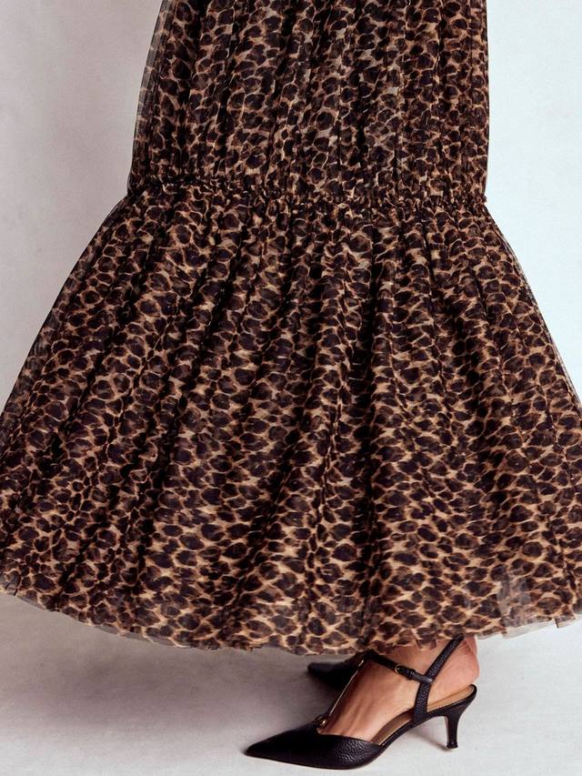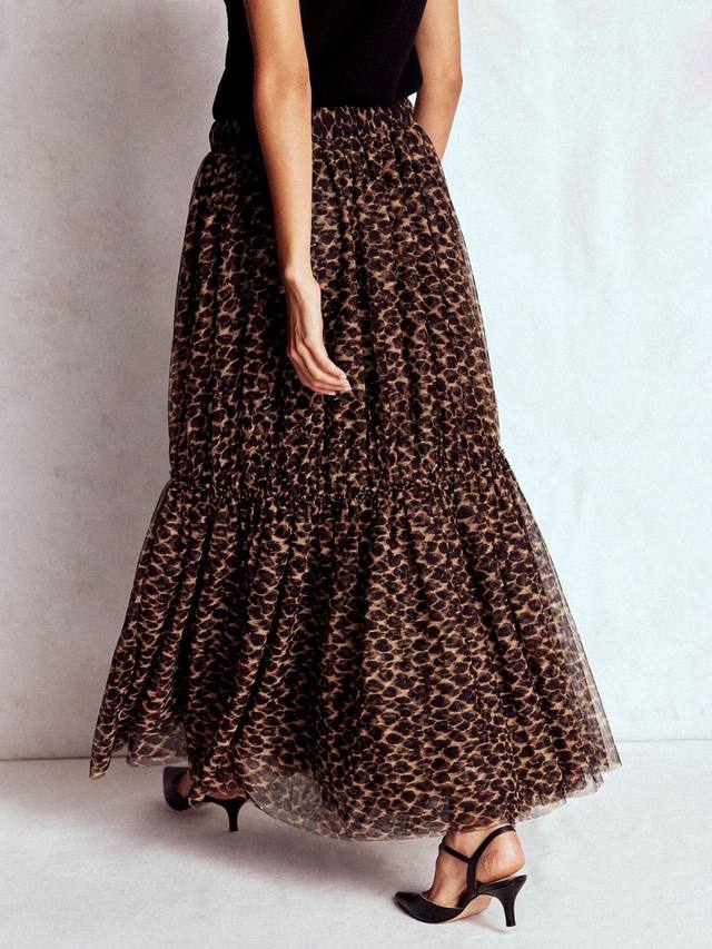 Эта макси-юбка от Boden с мягкими ярусами А-силуэта выполнена из тюля и дополнена анималистичным принтом, который придаст образу нотку свежести.