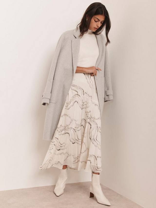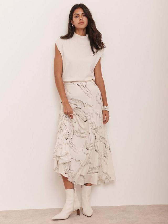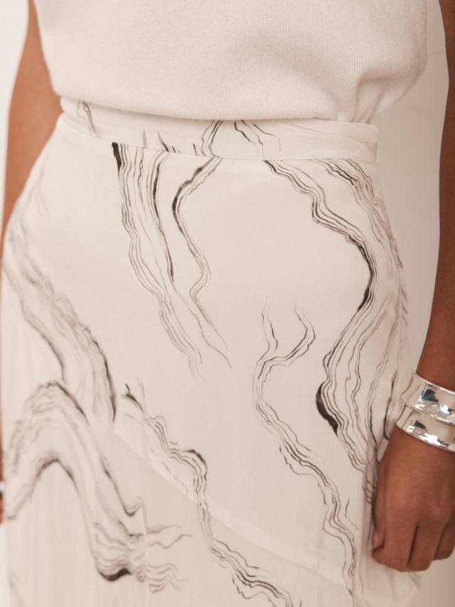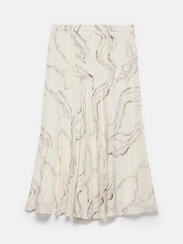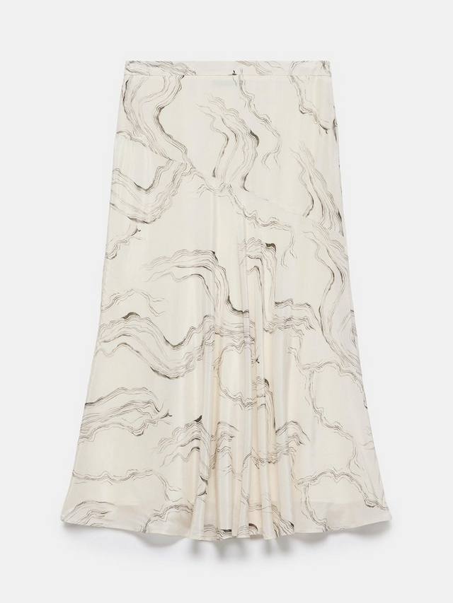 Юбка миди с мраморным принтом, высокой посадкой и застежкой-молнией сбоку.