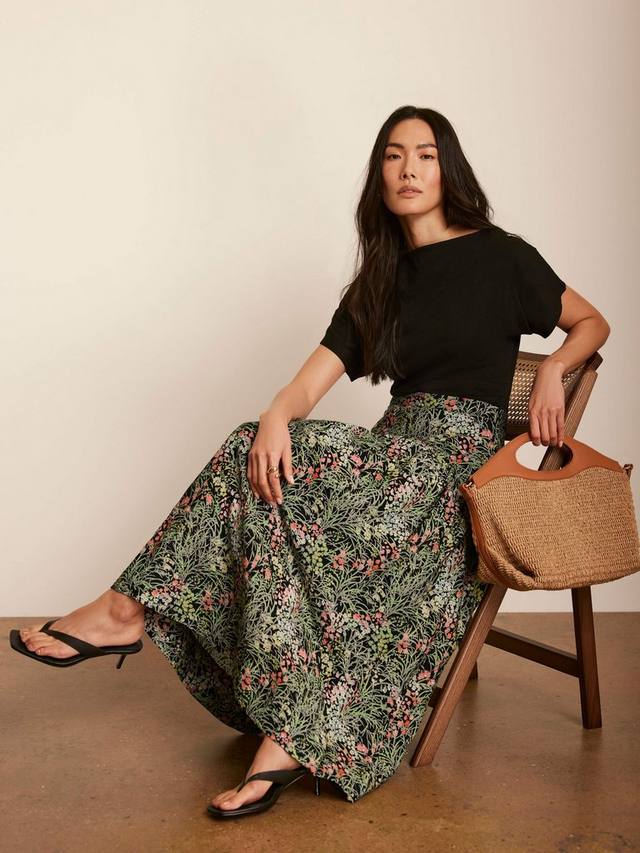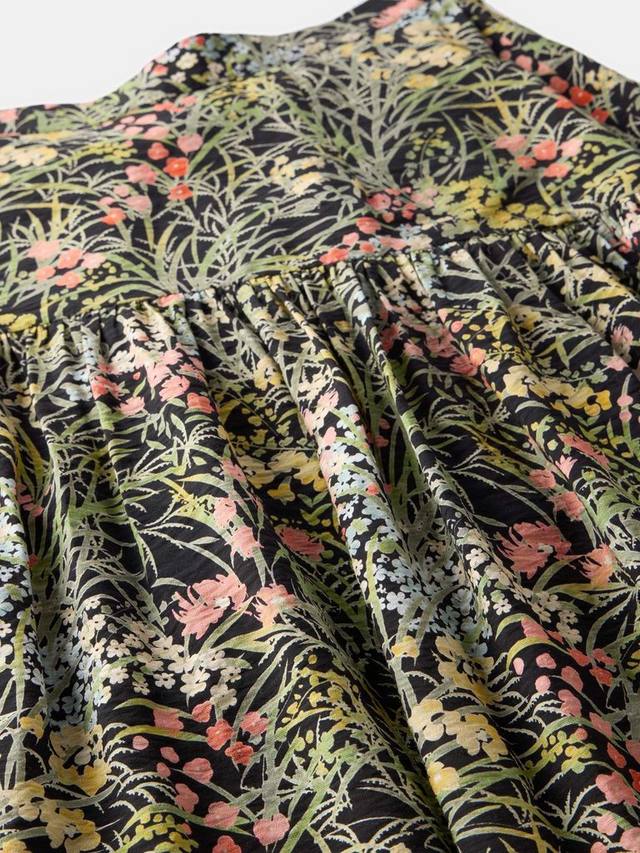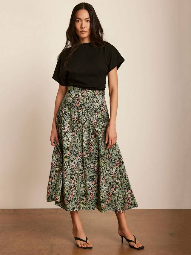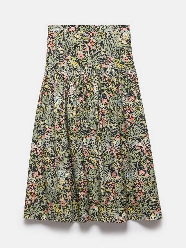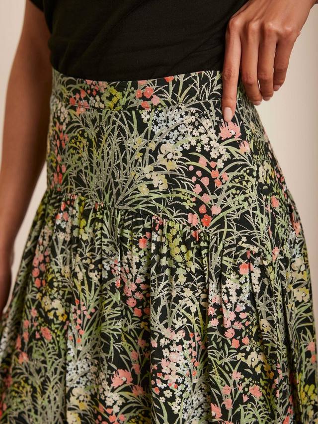Юбка миди с цветочным принтом, сборками и застежкой-молнией сбоку.