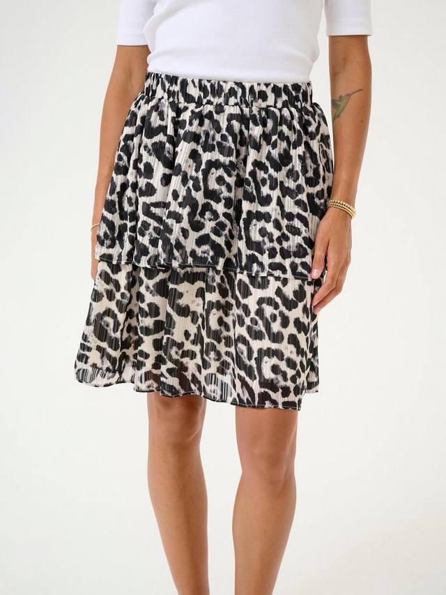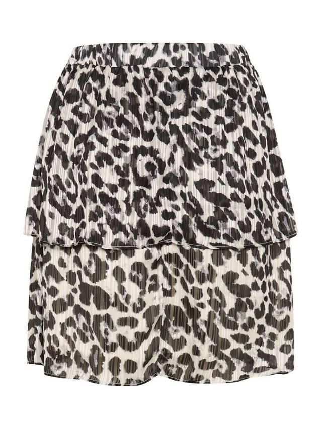 Юбка цвета сепии — это весёлый и струящийся фасон, который отлично сочетается с чем угодно, от повседневной футболки до женственной блузки. Высокая талия на резинке, два расклешённых яруса и А-образный силуэт. Юбка выше колена, сшита из лёгкой ткани с принтом.