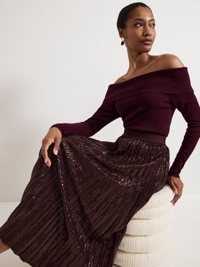 Эта юбка А-силуэта длиной до бедра от Phase Eight, идеально сложенная, украшена сверкающими украшениями.