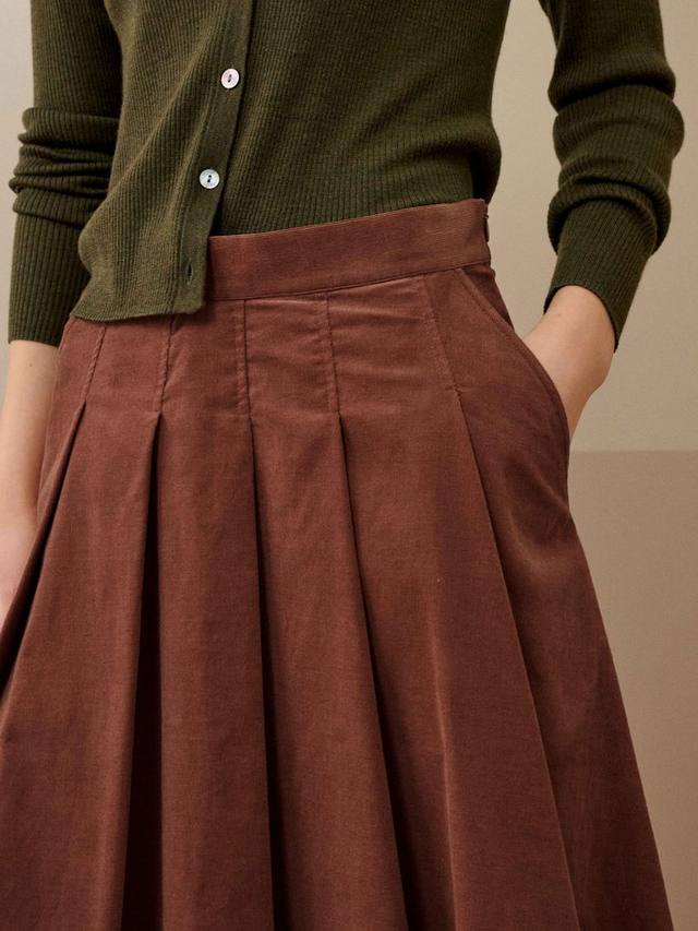 Brora рады представить вам новинку в своей желанной коллекции юбок, выполненную из роскошного бархатисто-мягкого хлопкового шнура с защипами и передними карманами.