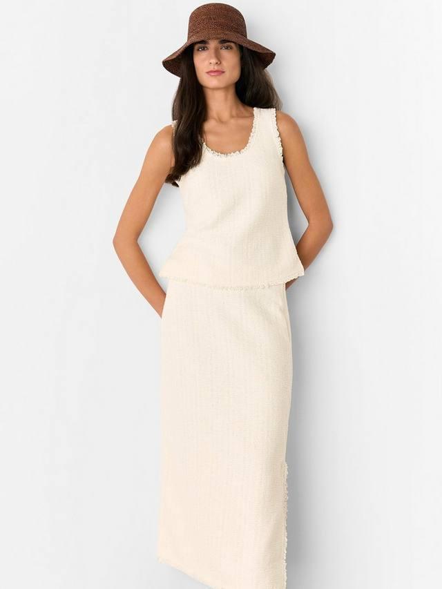 Эта юбка миди от Whistles, имеющая А-образный силуэт, выполнена из легкой смесовой ткани букле с бахромой по низу.