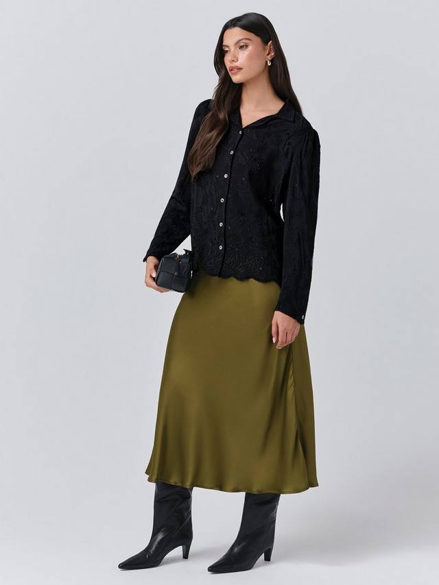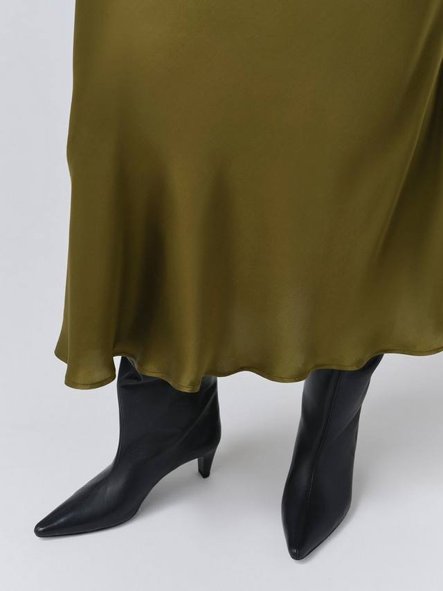 Если в вашем гардеробе только одна юбка, пусть это будет Luna. Эта простая атласная юбка-комбинация, настоящая классика, скроена по косой и имеет длину миди. Она выполнена из фирменного атласа, который струится по фигуре, создавая облегающий силуэт. Эластичный пояс обеспечивает комфорт. В этом сезоне рекомендуем носить атласную майку и трикотаж.