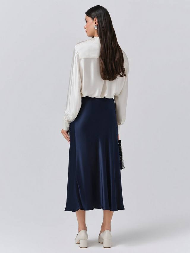 Если в вашем гардеробе только одна юбка, пусть это будет Luna. Эта простая атласная юбка-комбинация, настоящая классика, скроена по косой и имеет длину миди. Она выполнена из фирменного атласа, который струится по фигуре, создавая облегающий силуэт. Эластичный пояс обеспечивает комфорт. В этом сезоне рекомендуем носить атласную майку и трикотаж.