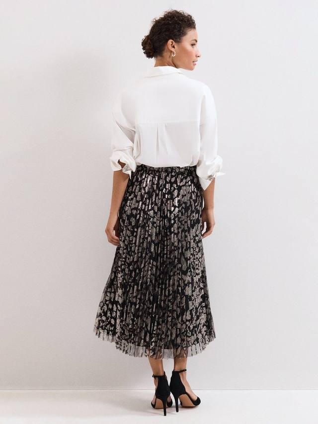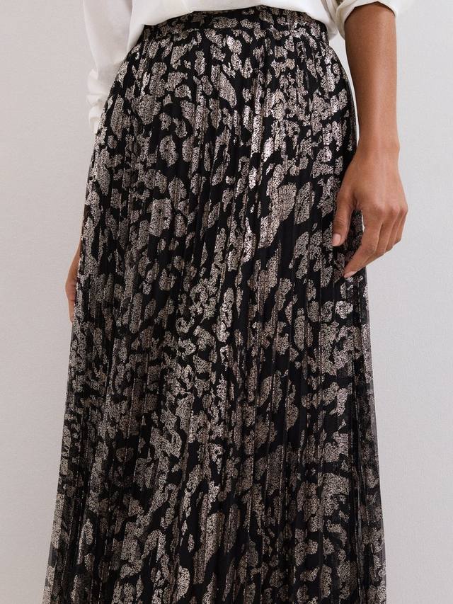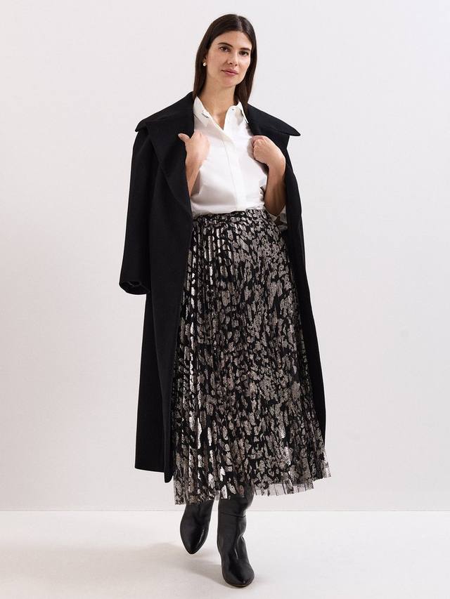 Эта юбка от Phase Eight, ниспадающая до середины бедра, идеально подходит для создания образа. Силуэт, построенный на складках, дополнен мерцающим эффектом фольги, который привносит новизну в анималистичные принты.