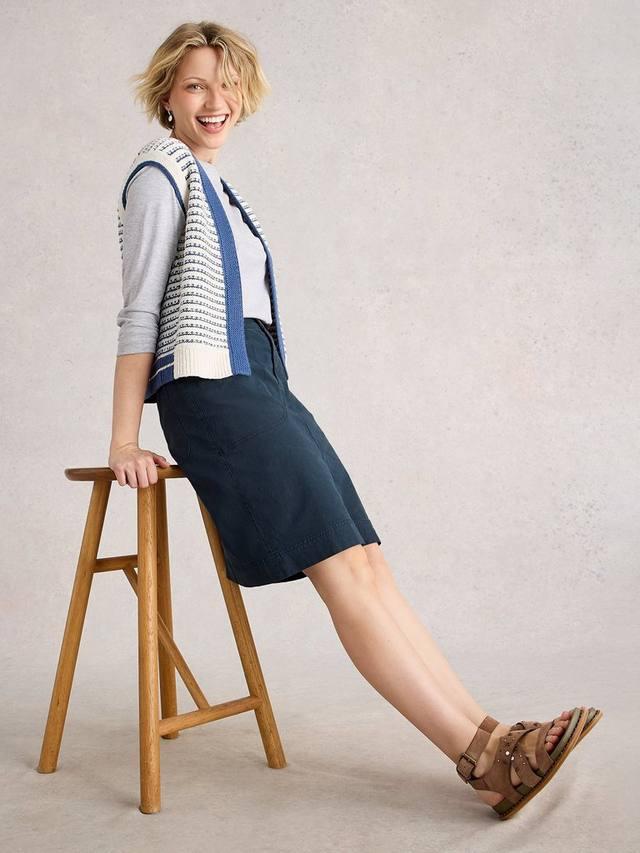 Эта юбка длиной до колена от White Stuff с А-образным силуэтом, которая всегда будет удобна в носке, является воплощением чистого минимализма.