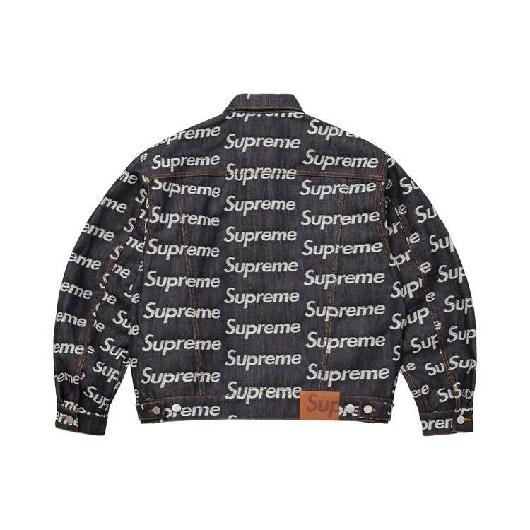 Джинсовая куртка Supreme Jacquard Logos Denim Trucker Jacket 'Rigid Indigo'
