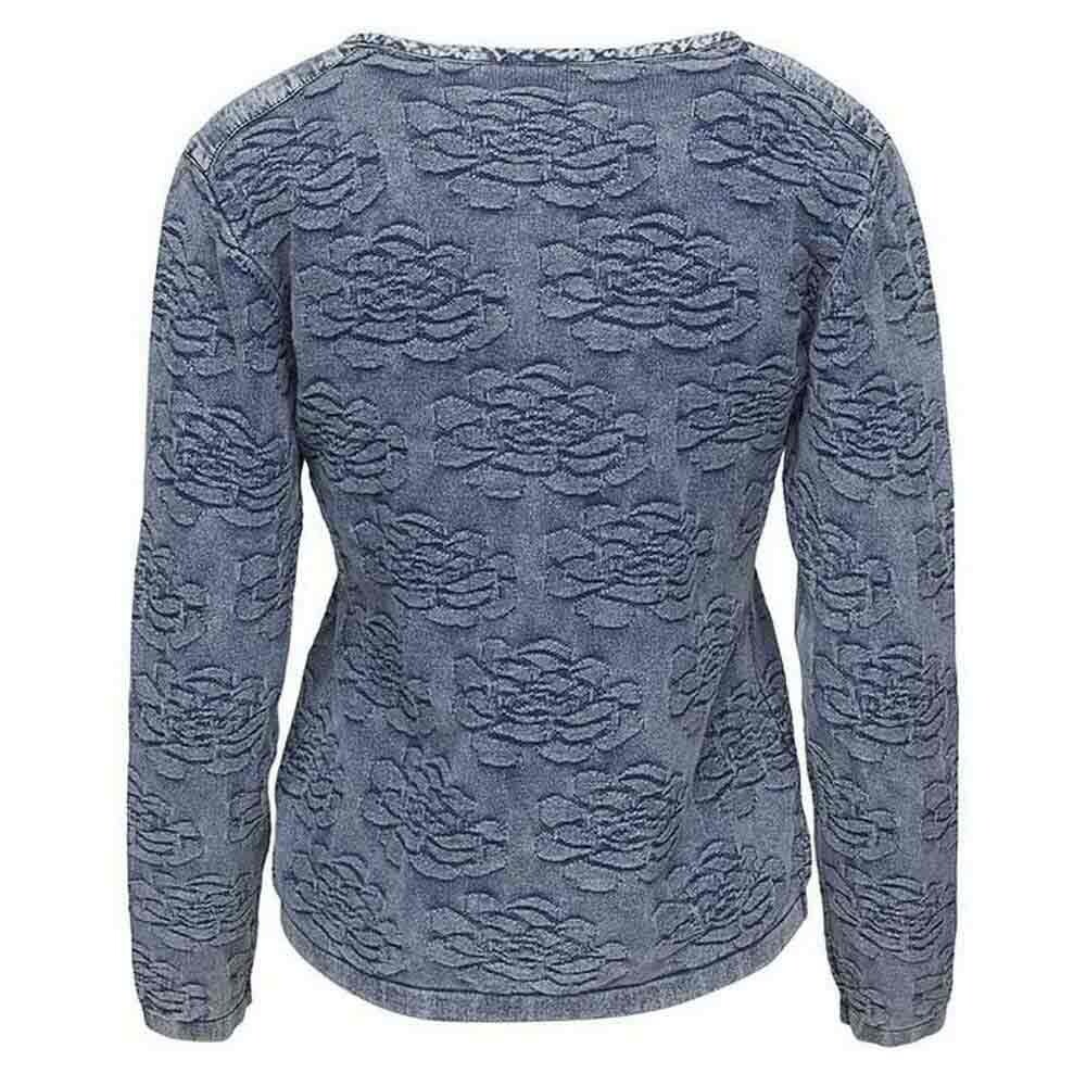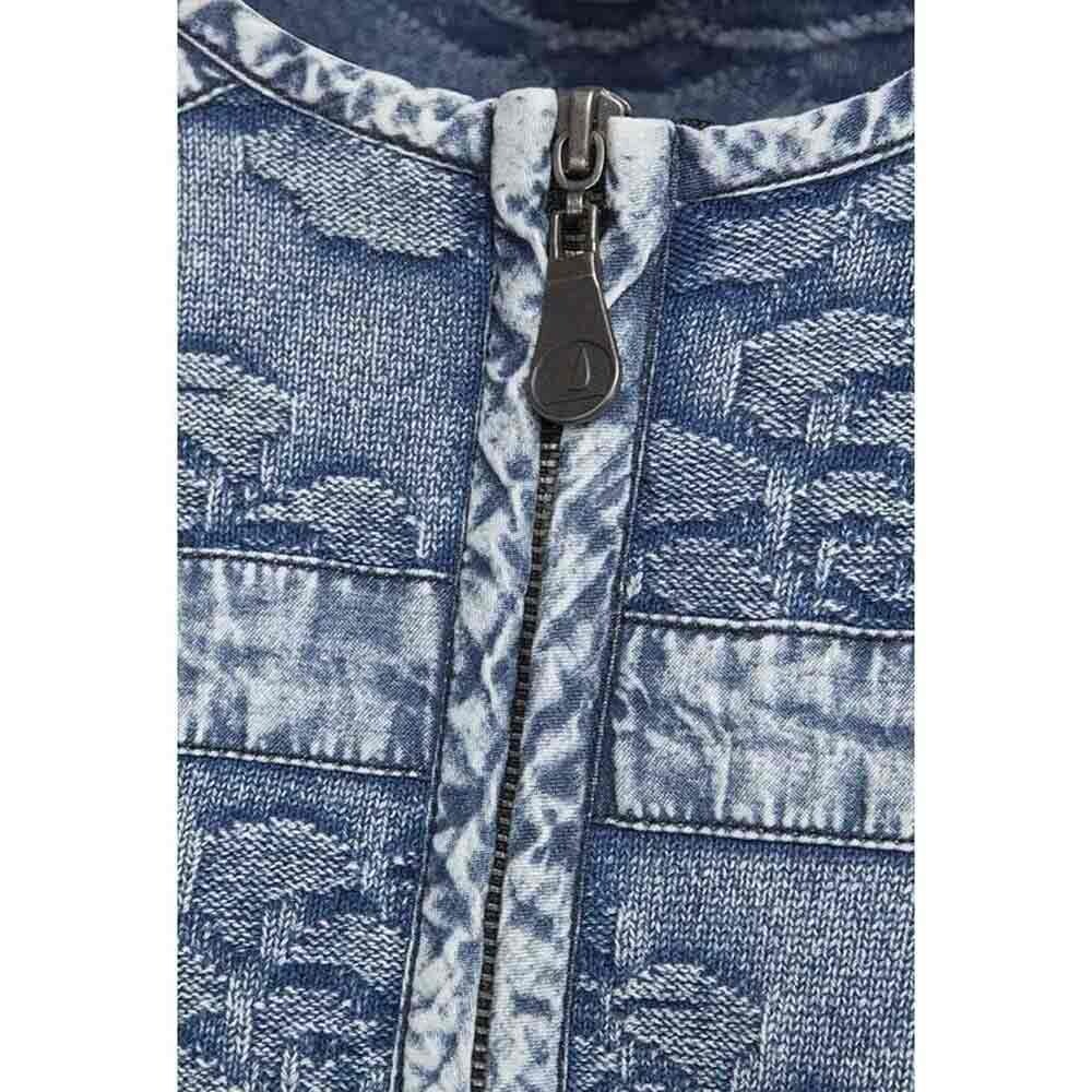 Женский кардиган цвета индиго с двумя карманами, молнией спереди и деталями из джинсовой ткани.