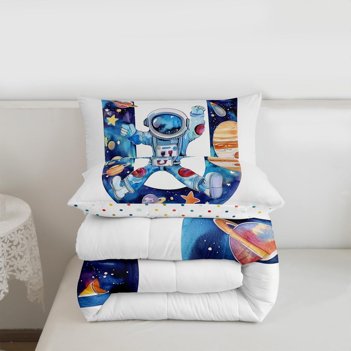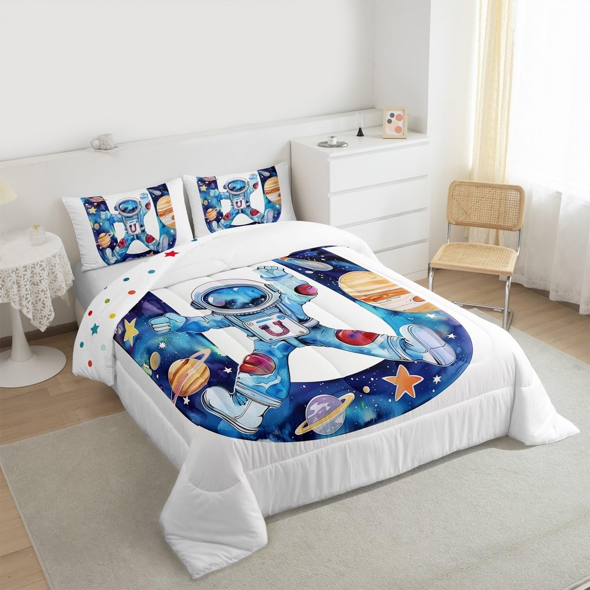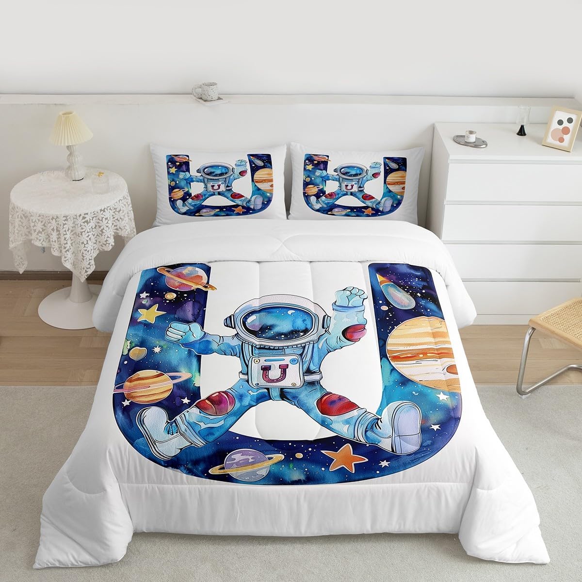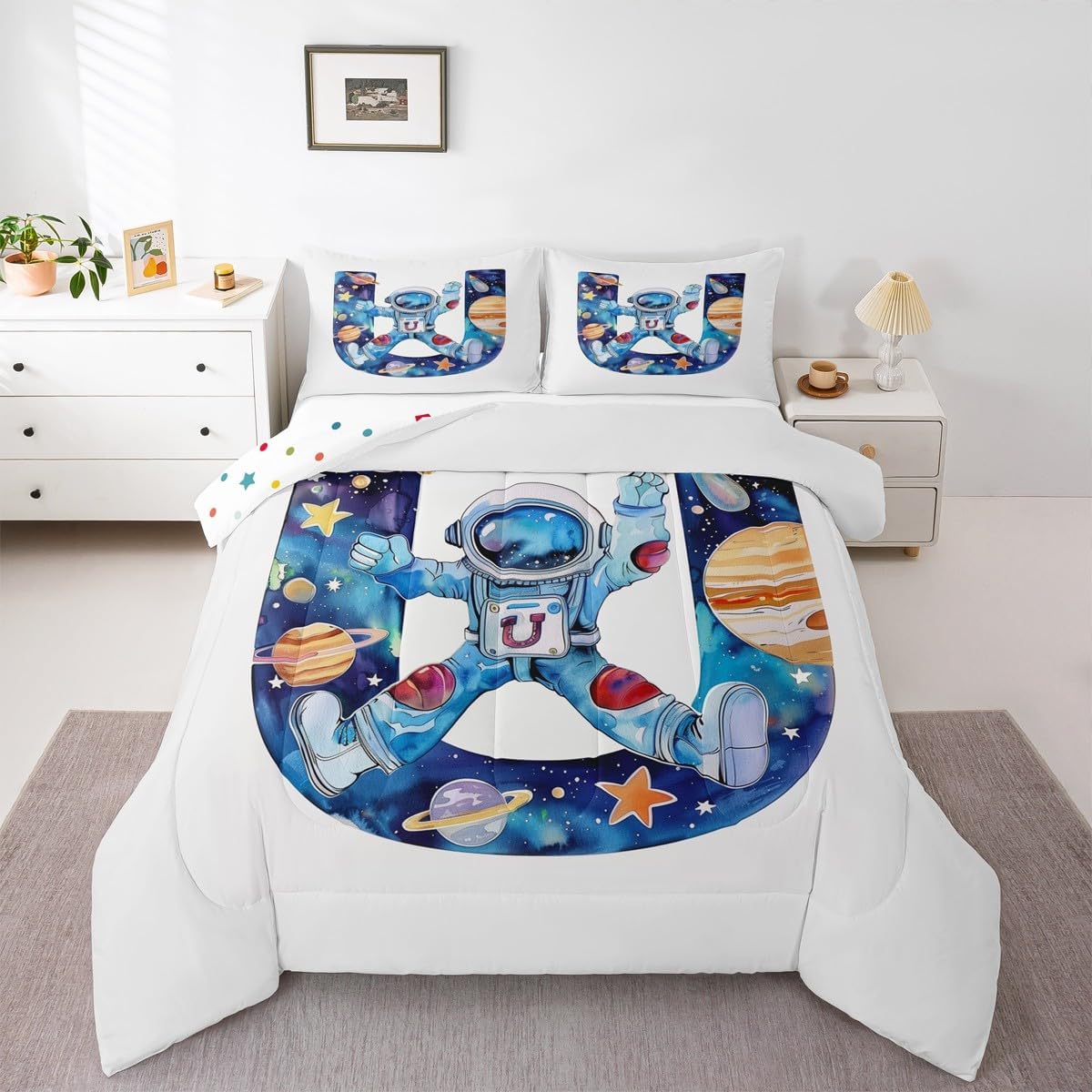 Erosebridal Детское одеяло с монограммой Initial Alphabet U, космический принт, астронавты, Blue White U