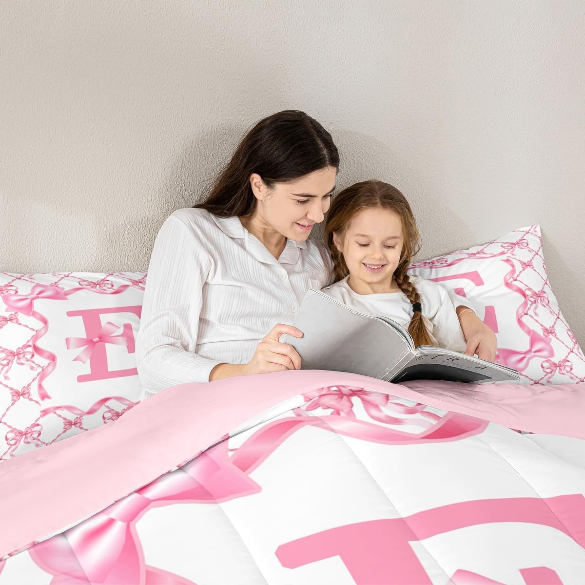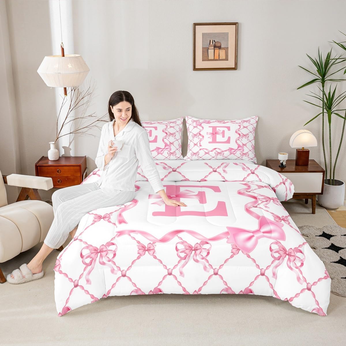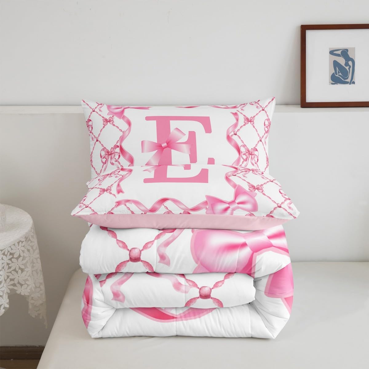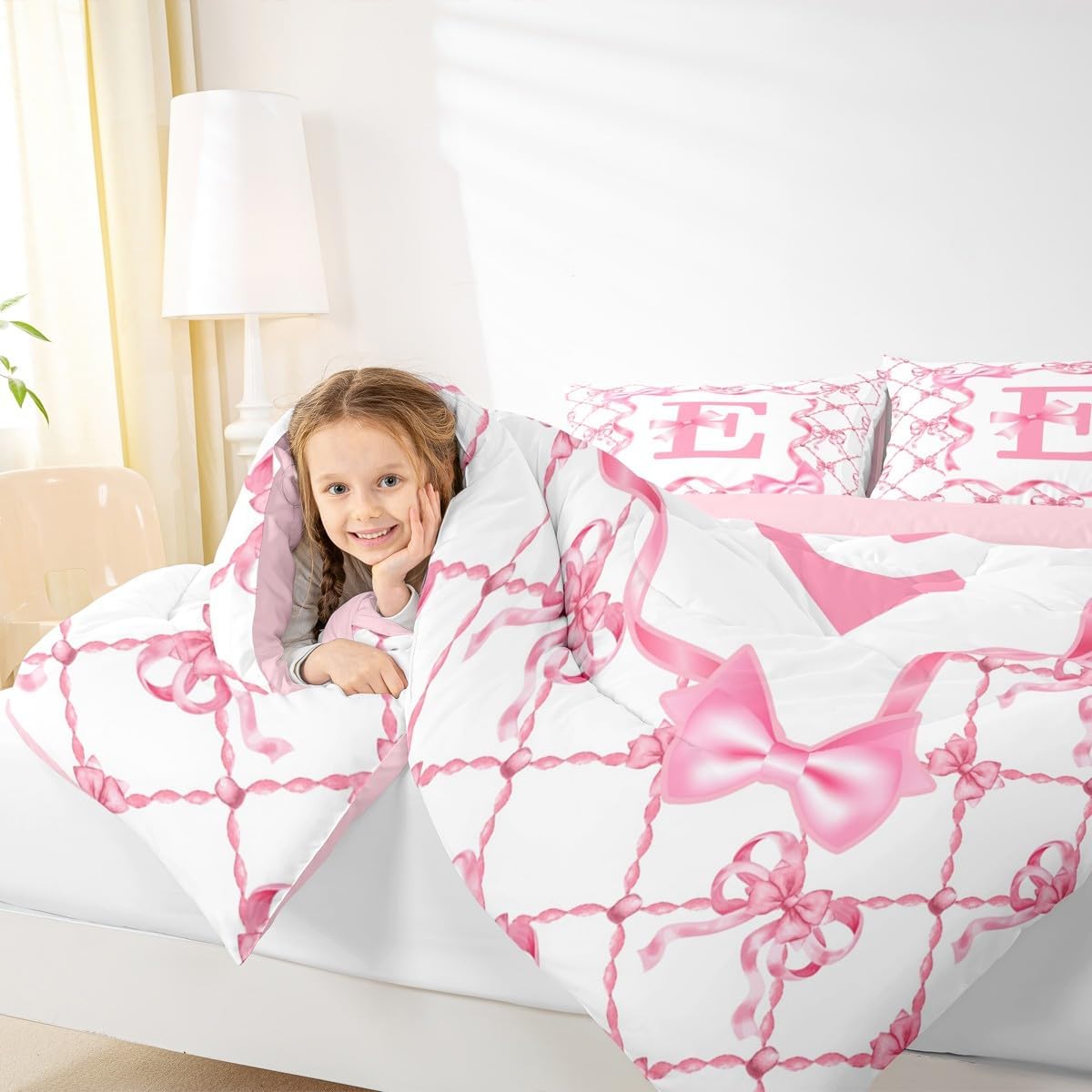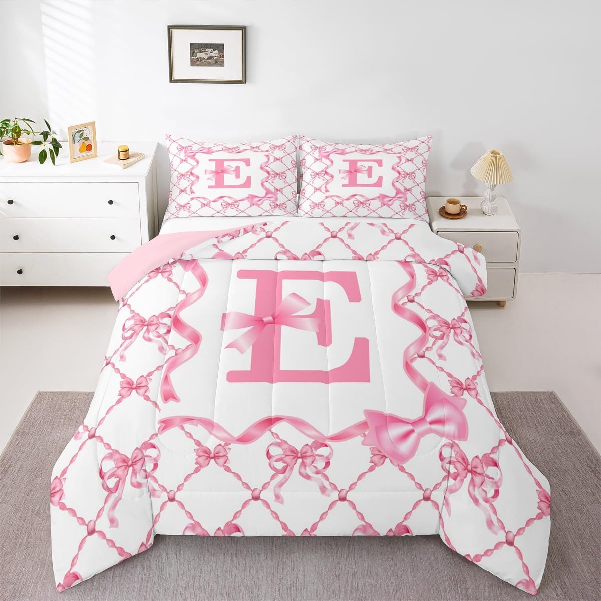 Erosebridal Комплект постельного белья Letter E с бантом для девочек, Pink E