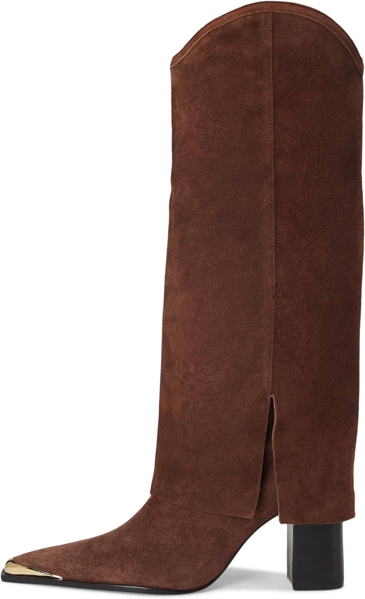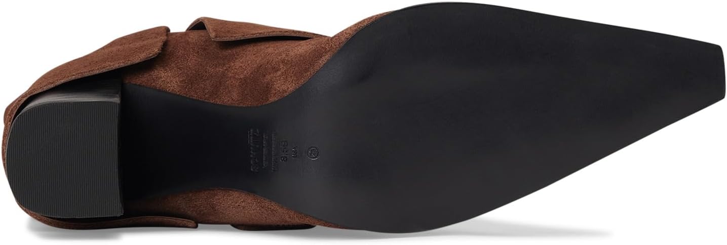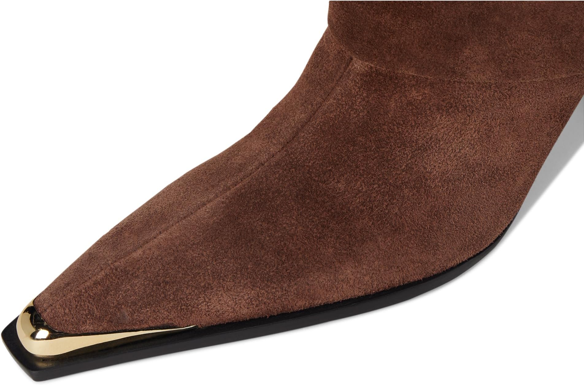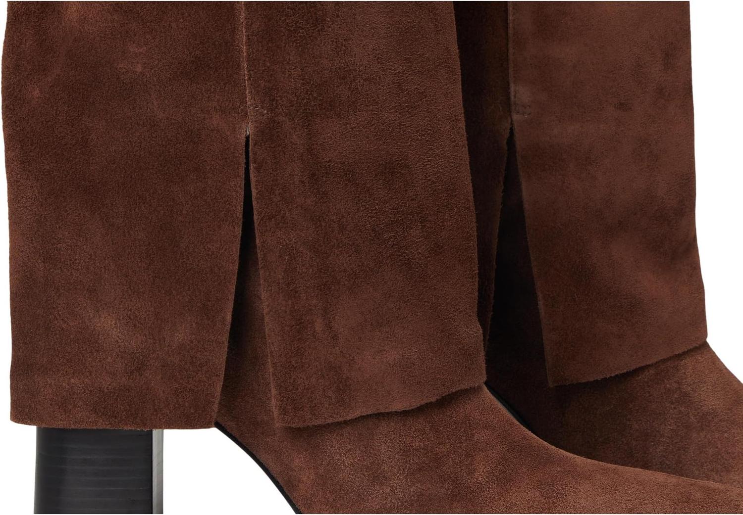 • Ботильоны Schutz Raffaela Up Cloak сочетают текстуру и лёгкий блеск, создавая современный взгляд на высокие сапоги. Мягкая замша служит основой, многослойные детали в стиле плаща придают глубину, а острый носок подчёркивается полированным золотым наконечником. Каблук средней высоты выгодно приподнимает ногу, делая эти сапоги универсальным вариантом для создания как повседневных, так и изысканных образов.