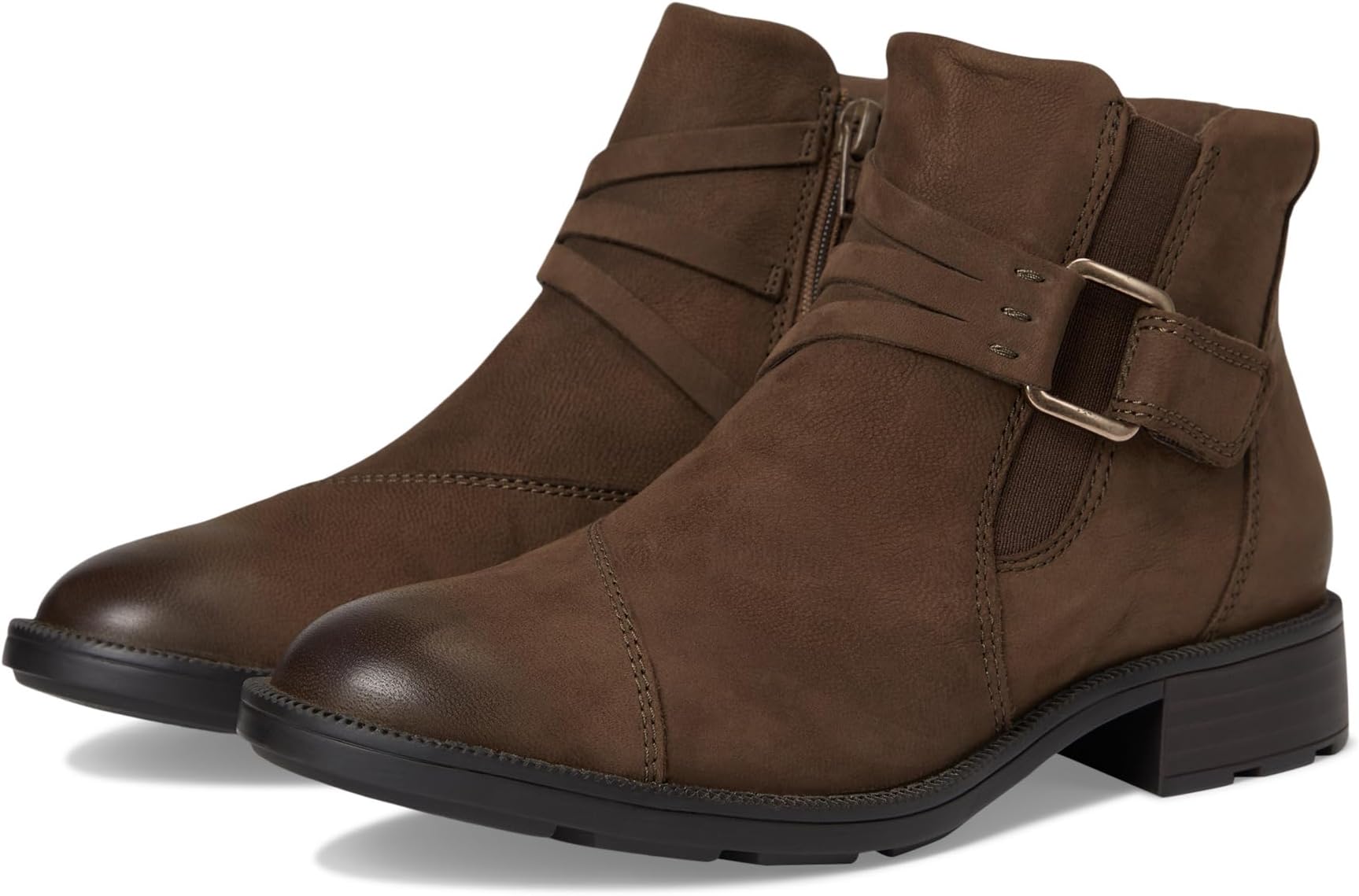 • Ботинки Clarks Adalynn Faye с характерными пряжками освежают современную повседневную линейку Clarks Collection в этом сезоне. Верх из мягкой нубуковой кожи создаёт классический, премиальный вид, а низкий каблук-набойка и металлическая фурнитура придают сдержанный стиль. Ребристая подошва из термопластичной резины обеспечивает практичность и лёгкость, позволяя без труда передвигаться по осенней местности. Эти высокие ботинки до щиколотки изготовлены из сетчатой подкладки и комфортной стельки из пеноматериала, обеспечивающей длительную амортизацию. Застёжка-молния сбоку обеспечивает лёгкое обувание, а ремешок с пряжкой — регулируемую надёжную посадку.