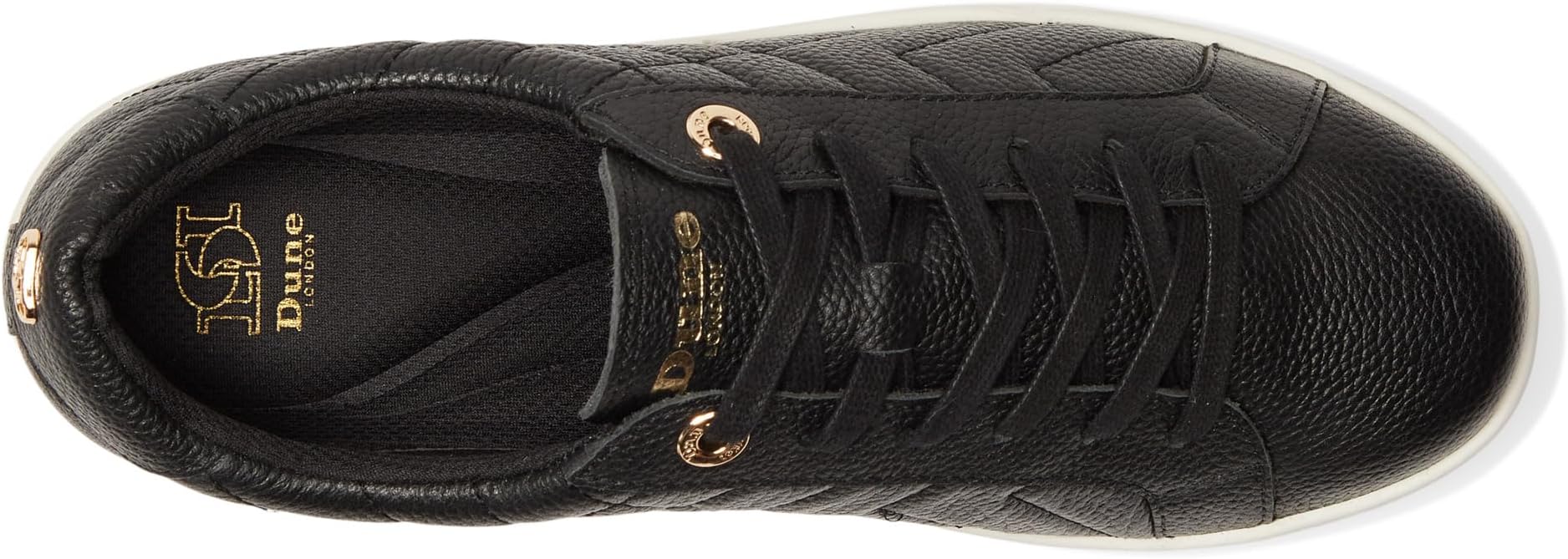 • Добавьте блеска в свой уличный образ, дополнив его повседневными кроссовками Dune London Egent. Эти низкие кроссовки с золотистым верхом из искусственной кожи, стеганым шлейфом Cupsole, подкладкой и стелькой из искусственной кожи обеспечивают длительный комфорт. Шнуровка обеспечивает надежную посадку.