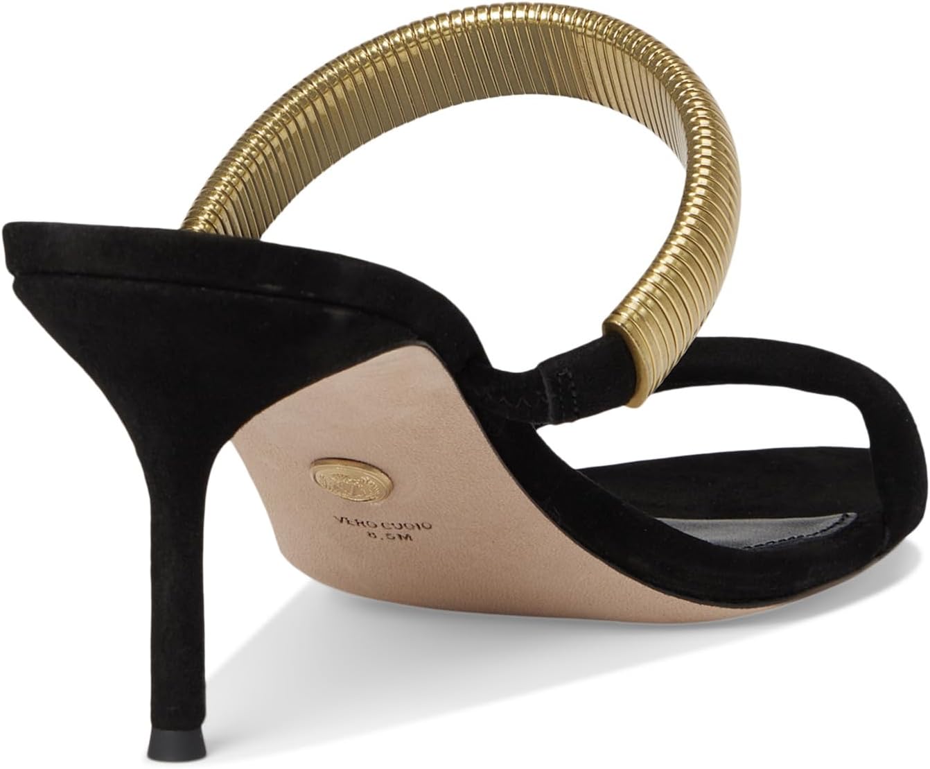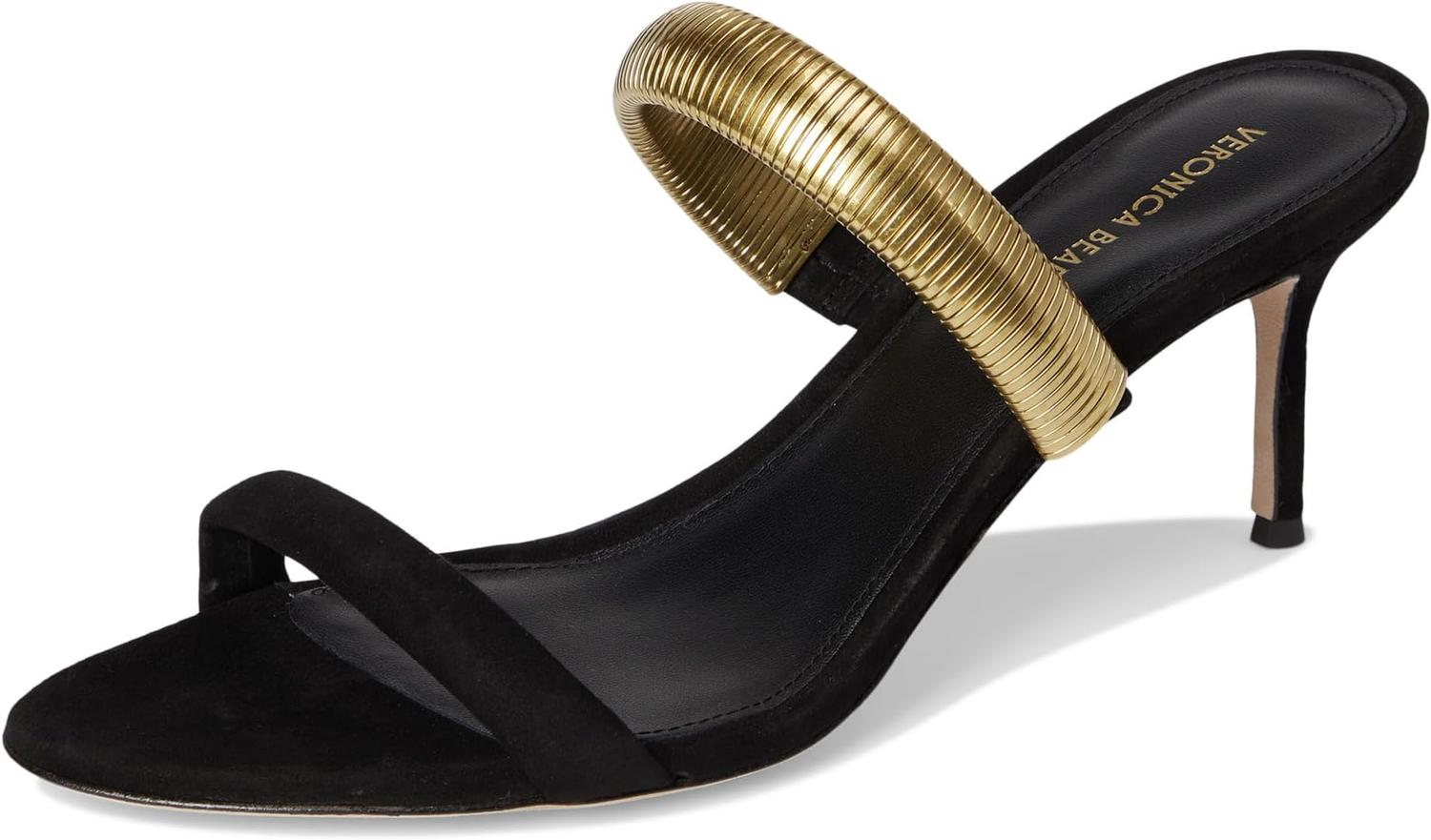 • Сдержанность и незабываемость. Сандалии Veronica Beard Tobin Slide, искусно изготовленные из чёрной замши, отличаются элегантным минималистичным силуэтом и эффектным золотистым ремешком, напоминающим змеиную цепь. Эти туфли без застёжки имеют кожаную стельку и подкладку. Эти босоножки на каблуке, элегантные и одновременно непринужденные, украсят любой наряд — от джинсов для отдыха до вечерних нарядов.