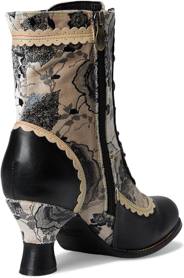 • Ботинки L'Artiste by Spring Step Bewitch-prit отличаются яркими цветочными узорами, фестончатой отделкой и богатой текстурой, создавая поистине уникальный образ. Шнуровка спереди позволяет регулировать посадку, а застёжка-молния сбоку обеспечивает лёгкость надевания. Скульптурный каблук средней высоты добавляет винтажный шарм и обеспечивает комфорт в течение всего дня, а резиновая подошва обеспечивает отличное сцепление. Внутри ботинок с бархатной подкладкой и мягкой стелькой из искусственной кожи, что делает его таким же удобным, как и эффектным.