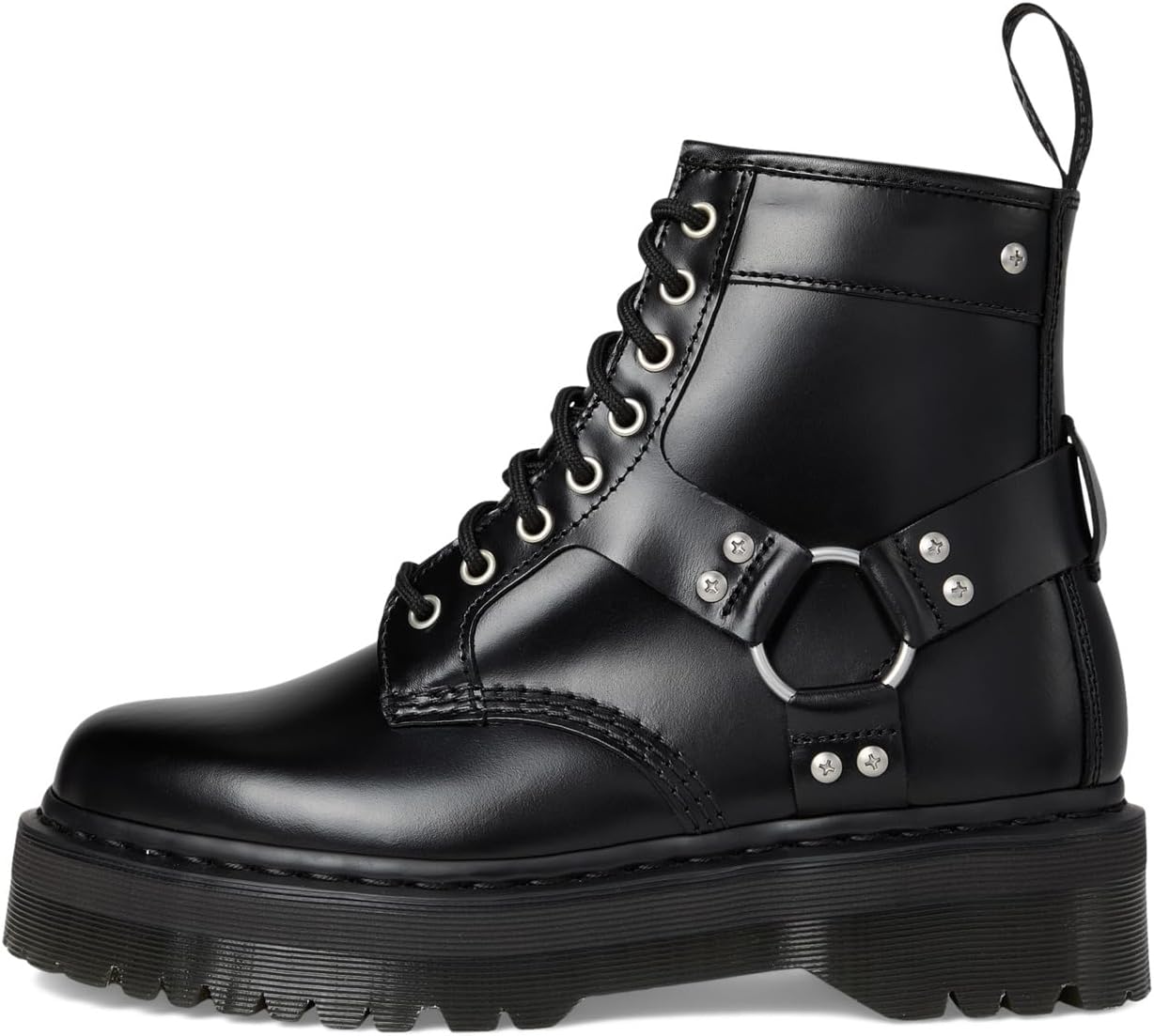 • Пристегнутые, но не стесненные. Ботинки Dr. Martens 1460 Quad Harness с 8 люверсами дополнены контрастной фурнитурой на глянцевой черной коже. Известная своей гладкой отделкой и прочным вощеным покрытием, кожа Analine — это залог долговечности. Украшенные серебристыми люверсами и деталями шлеи, другие детали выполнены в сдержанной монохромной гамме: черная и металлическая петля на пятке, черная прострочка и черная подошва Quad для большей высоты и ударопрочности.