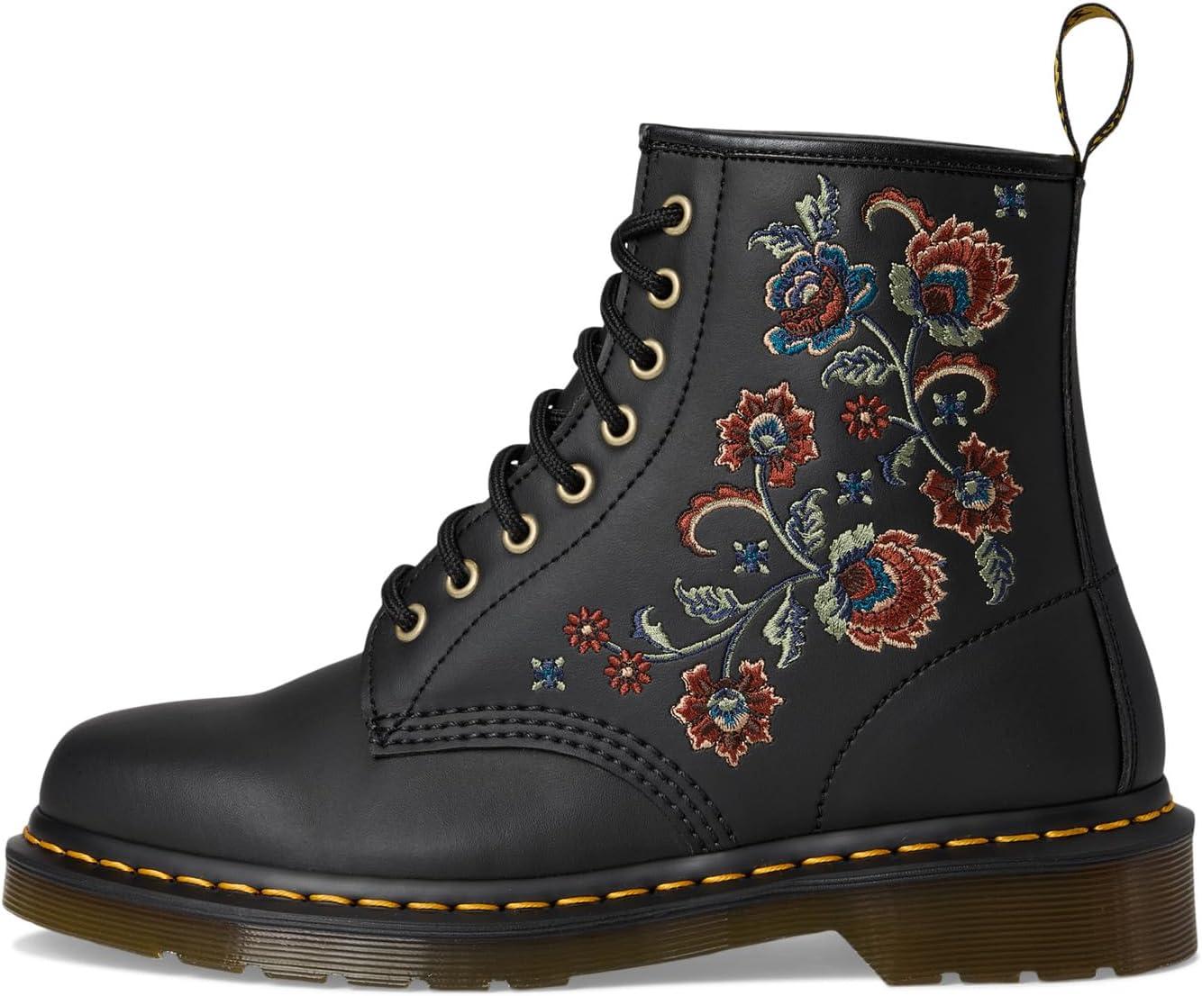 • Ботинки Dr. Martens 1460 Vonda с восемью люверсами, пропитанные британским духом, вдохновлены интерьерами классических британских пабов и концертных залов. Они изготовлены из восстановленной кожи Genix Nappa, украшены люверсами цвета старинного золота и вышиты уникальной цветочной строчкой Tavern Floral, которая ниспадает по всей длине голенища. Фирменные детали DM включают в себя петлю на пятке, желтую прострочку и подошву Trans DMS с классическим рифлением.