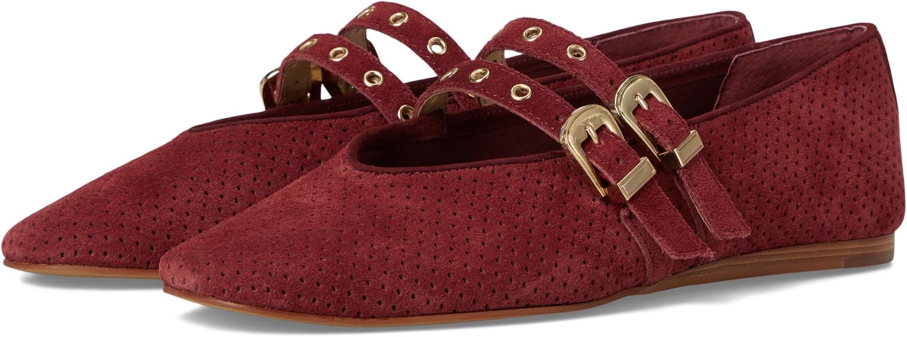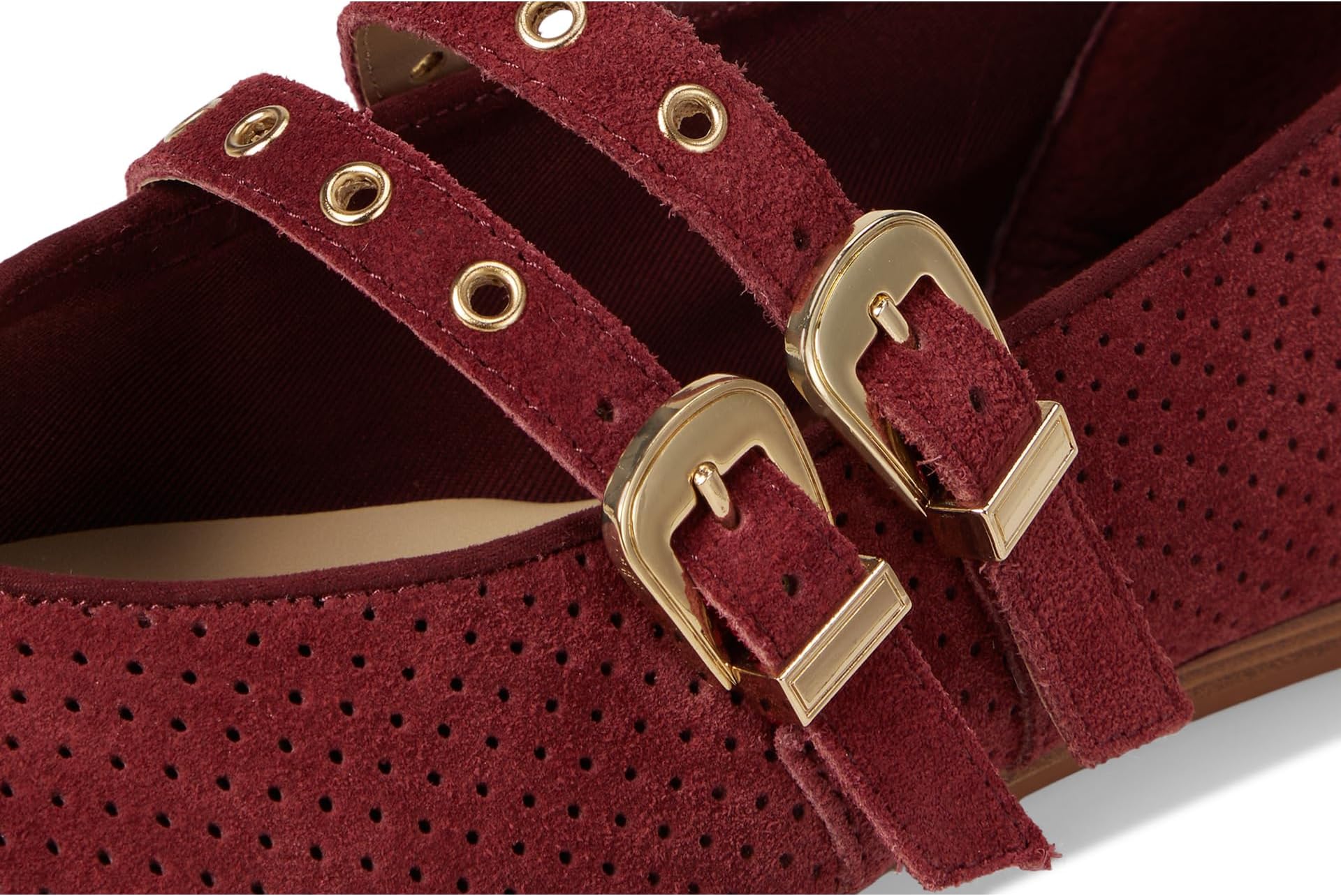 • Dolce Vita Baylee Grommet — классические туфли Мэри Джейн с ярким, модным дизайном. Благодаря двойным ремешкам, украшенным металлическими люверсами и эффектными пряжками, они сочетают в себе винтажный шарм и современный стиль. Верх обуви выполнен из перфорированной замши, что обеспечивает богатую, приятную на ощупь отделку.