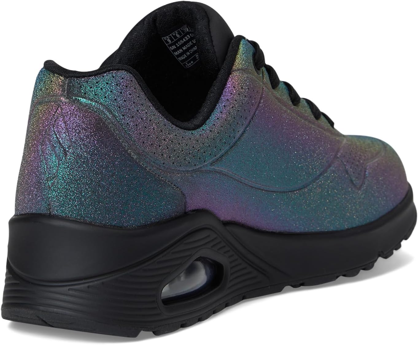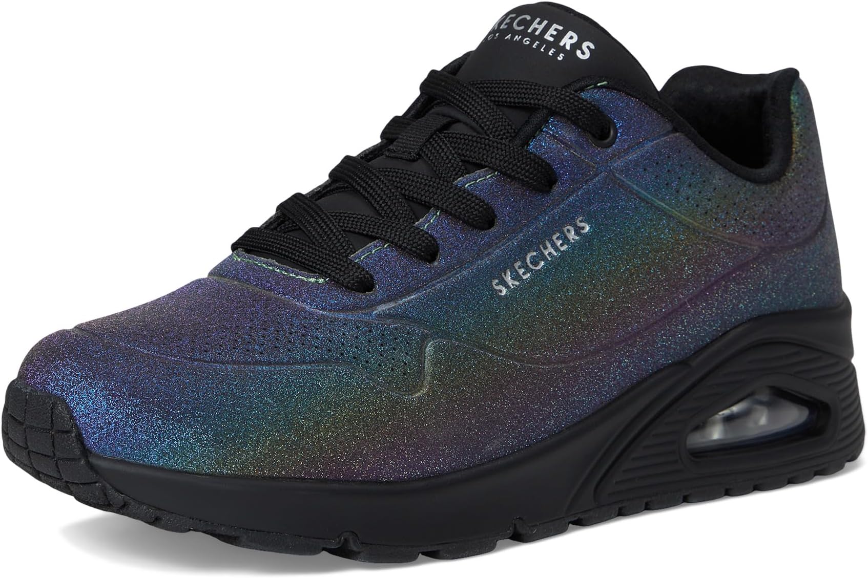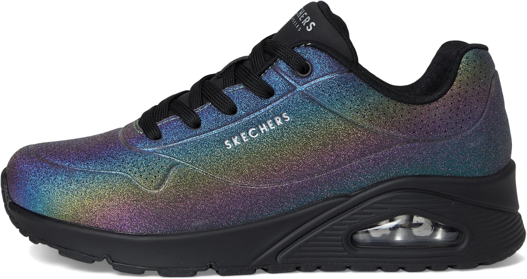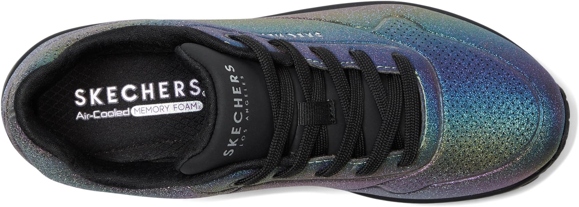• Сверкайте и сияйте всю ночь напролёт в комфортных кроссовках SKECHERS Dazzling Nite. Эти модные кроссовки на шнуровке с разноцветным блестящим верхом из синтетической кожи дюралюминия, комфортной стелькой Skechers Air-Cooled Memory Foam и видимой контрастной промежуточной подошвой Skech-Air с воздушной подушкой.