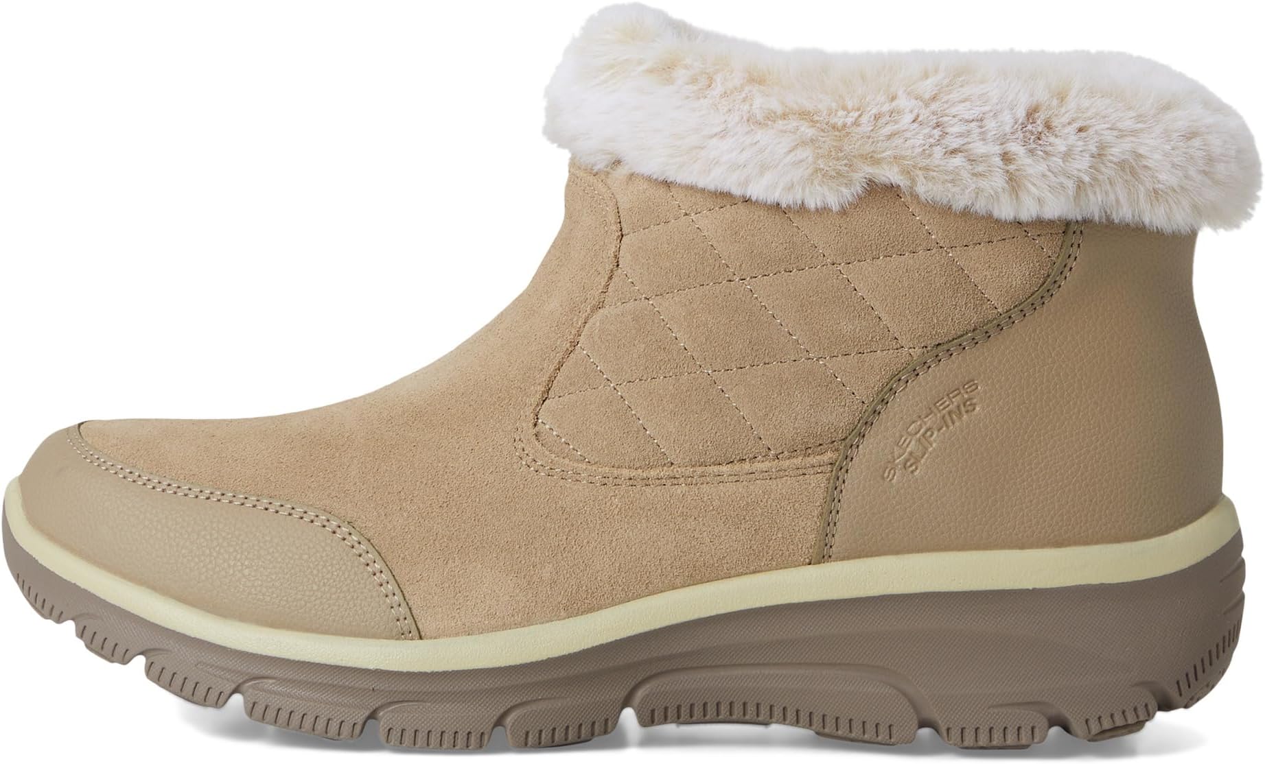 • Вступите в сезон с непринужденным комфортом в туфлях-слипах SKECHERS Easy Going - Small Towns Hands Free Slip-ins. Эти уютные ботильоны с нашей эксклюзивной подушкой Heel Pillow выполнены из замши и дюралевой кожи с обработкой 3M Scotchgard, стеганого голенища, воротника и подкладки из искусственного меха, а также стельки из пены с эффектом памяти Skechers Air-Cooled.