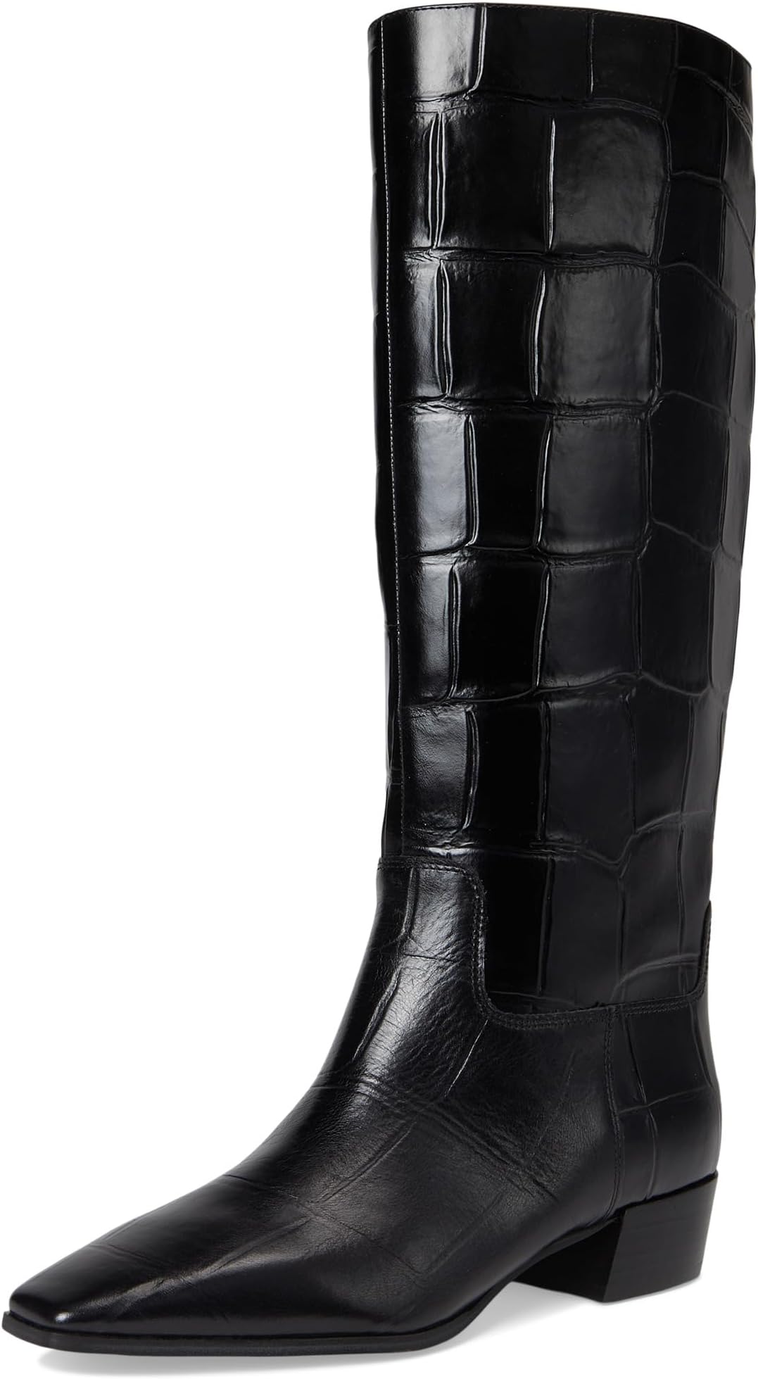 • Эти элегантные сапоги Vince Camuto Pavla до колена излучают непринужденную изысканность. Изготовленные из кожи с тиснением под крокодила, эти сапоги на каблуке отличаются утонченным силуэтом с острым носком и изящным голенищем. Низкий наборный каблук сочетает в себе стиль и комфорт, а застежка на молнию по всей длине сбоку обеспечивает легкое надевание. Стелька из полиэстера и тканевая подкладка. Эти универсальные сапоги на каблуке, будь то в сочетании с брюками строгого кроя или шикарным платьем, добавят изысканности любому образу.